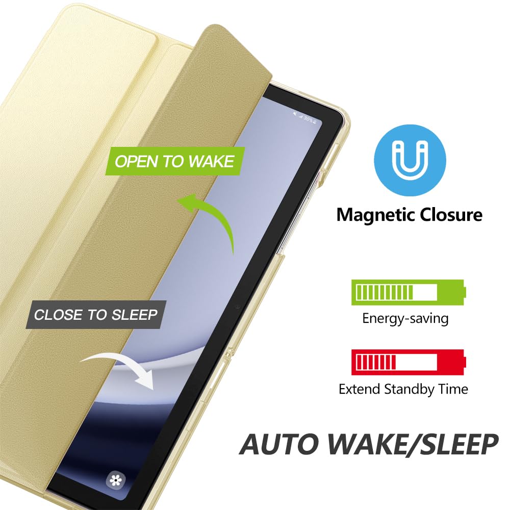 Auto Wake/Sleep: Built-in magnetic strip, automatically wakes or puts your tablet to sleep when the lid is opened and closed. this Tab A9 Plus Case Protects and extends battery life