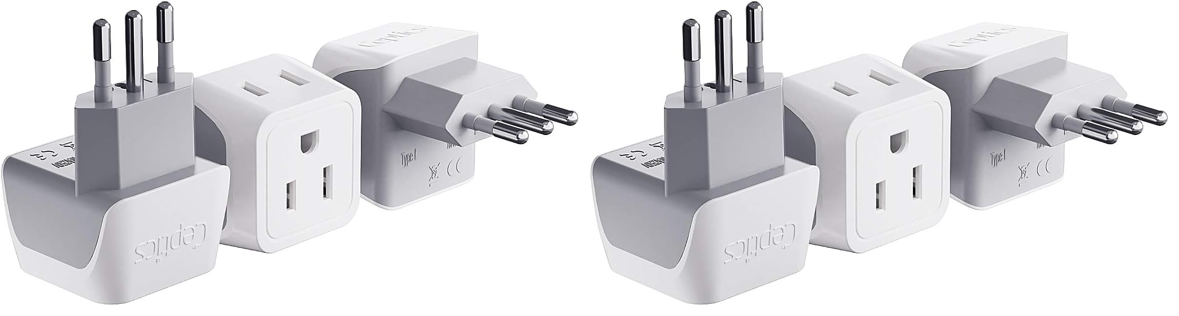[3-Pack Italy plug adapter] Ceptics CT-12A Italy plug adapter features 1 grounded and 1 non-grounded socket which accepts plugs from US. This Complete Asia Adapter is small, lightweight and perfect for your travels.