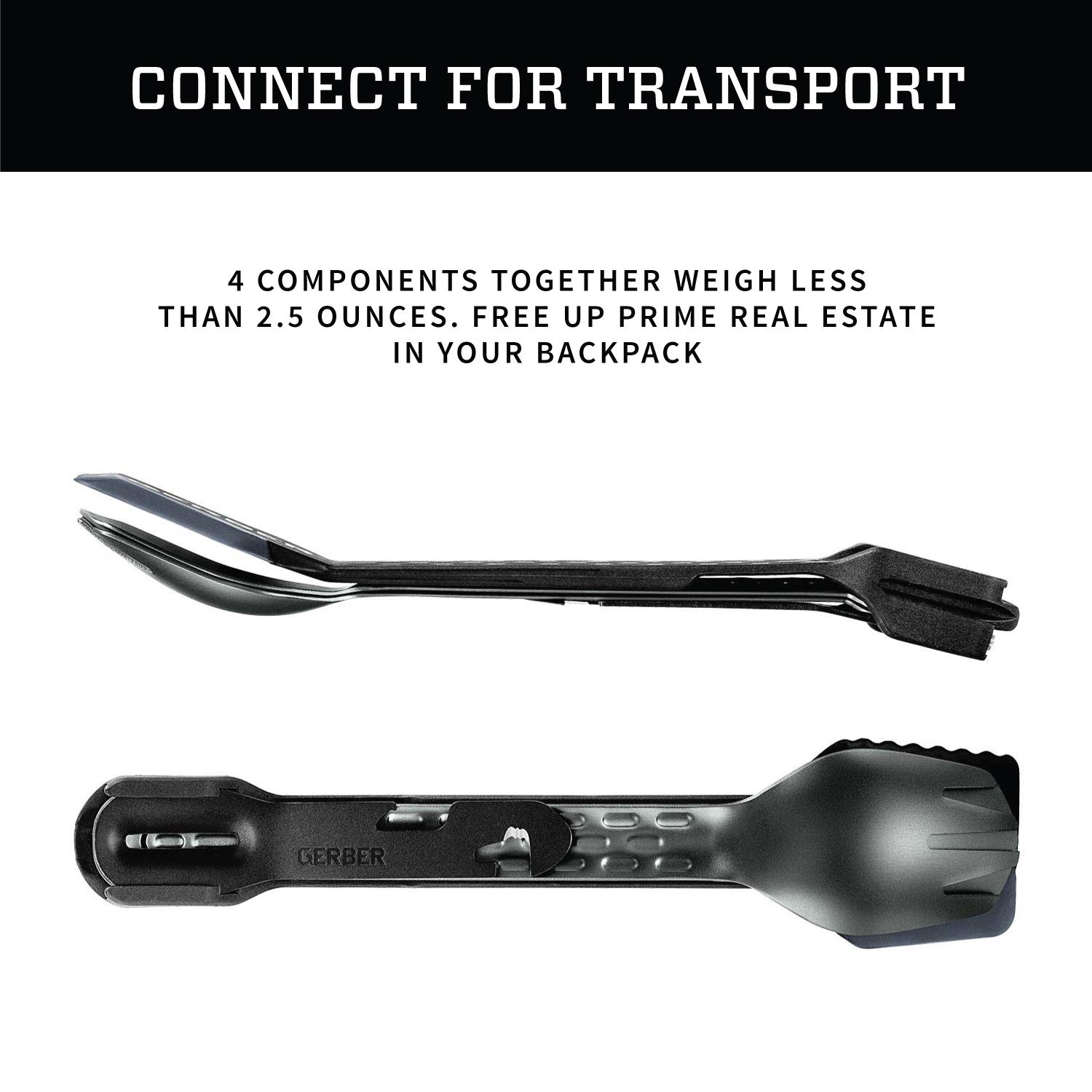 When you're on the trail, the most important meal of the day is the one you're about to eat. The Gerber ComplEAT camping utensil set has all your outdoor cooking and dining needs covered. This versatile backpacking cookware kit includes a fork, spoon, spatula, and a 4-function multi-tool that nest together for compact storage and easy transport. The components cleverly snap together to convert into functional tongs, making it an essential part of your camping kitchen gear. Cook, eat, clean, and get back to your outdoor adventure with this lightweight and durable camping cookware set.