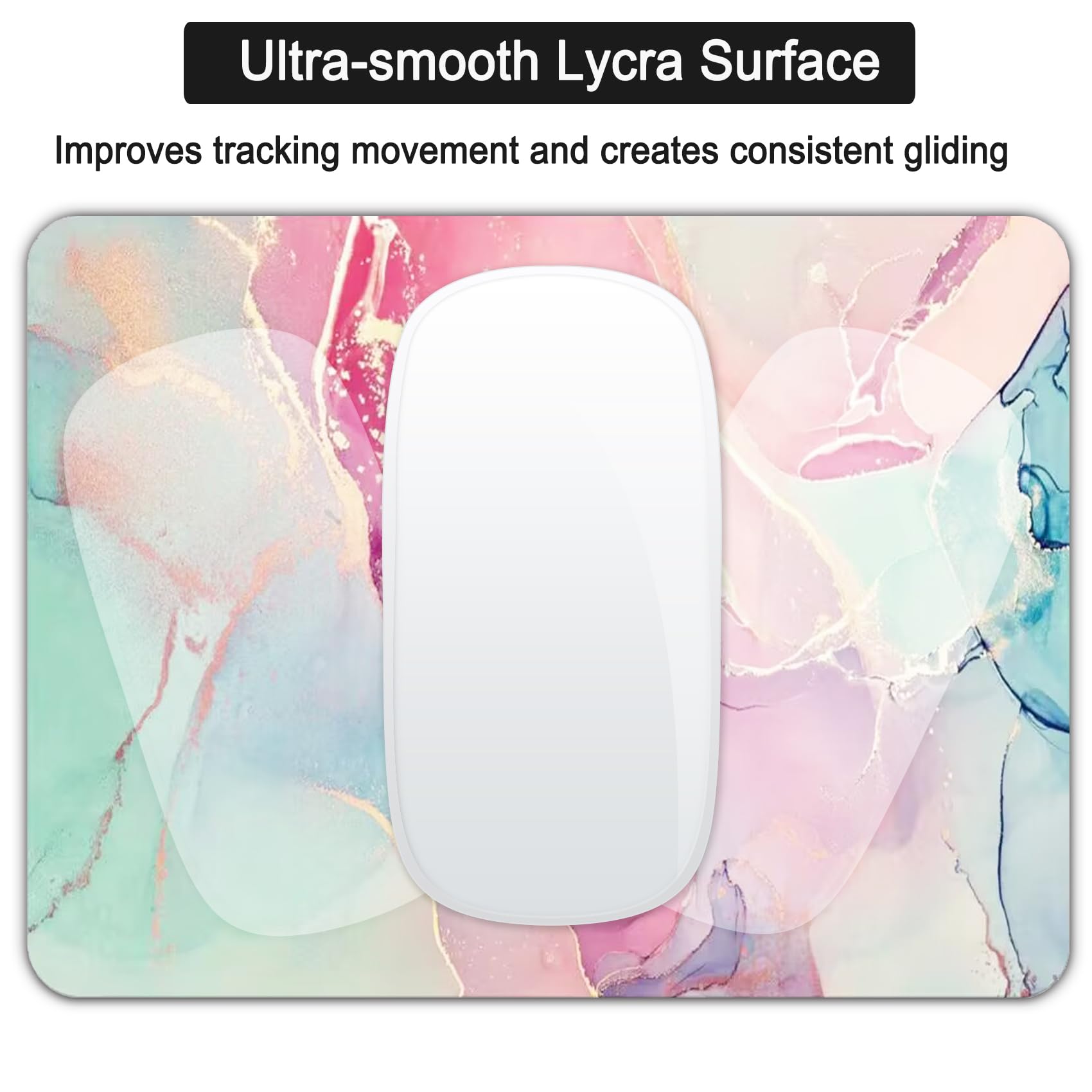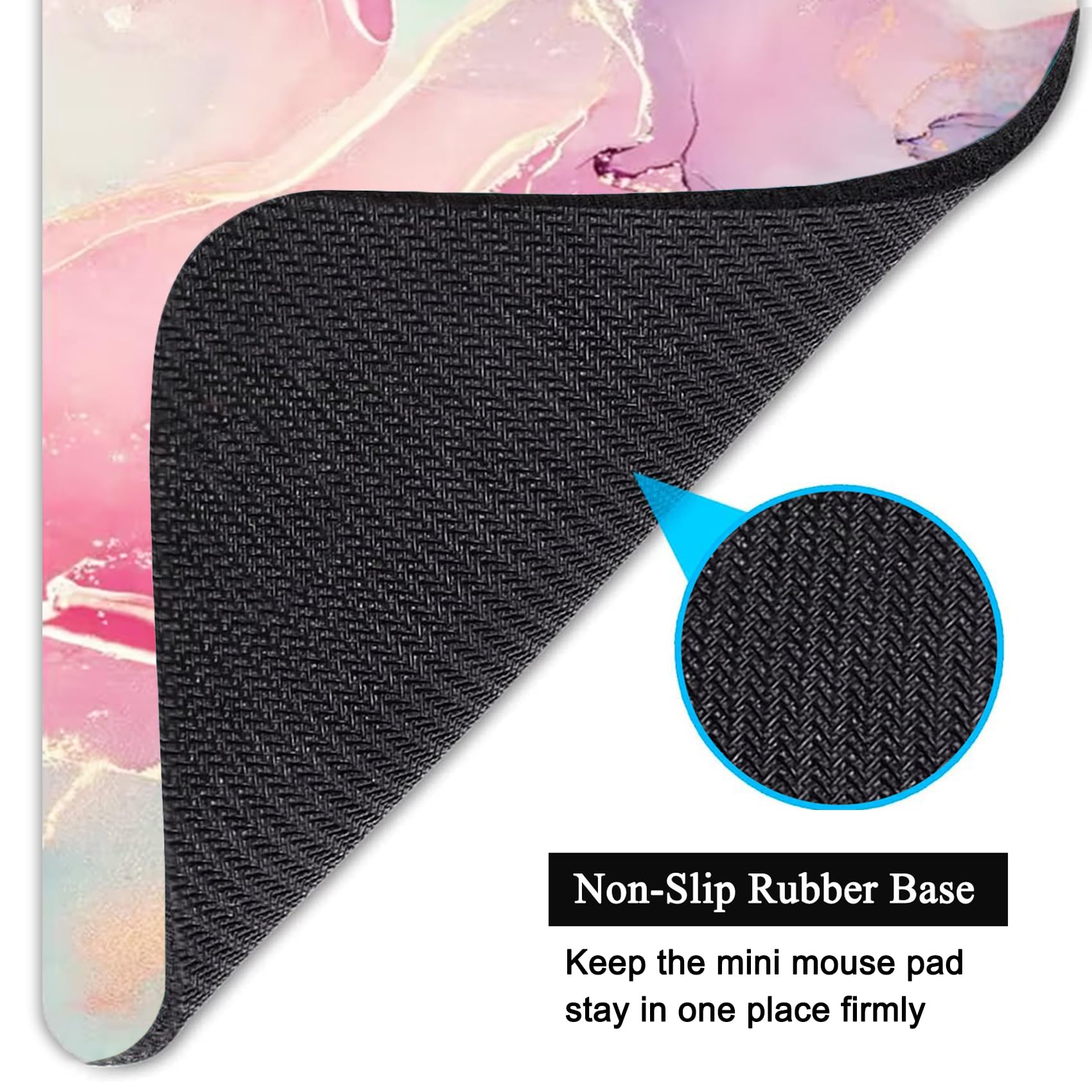 【Non-slip Rubber Base】Mouse pad's non-slip rubber base can firmly grip any flat, hard surface and keep the mini mouse pad in one place while working or gaming. It is very comfortable,long-lasting and not warped edge easily.