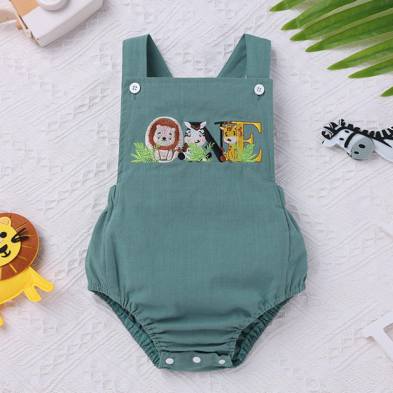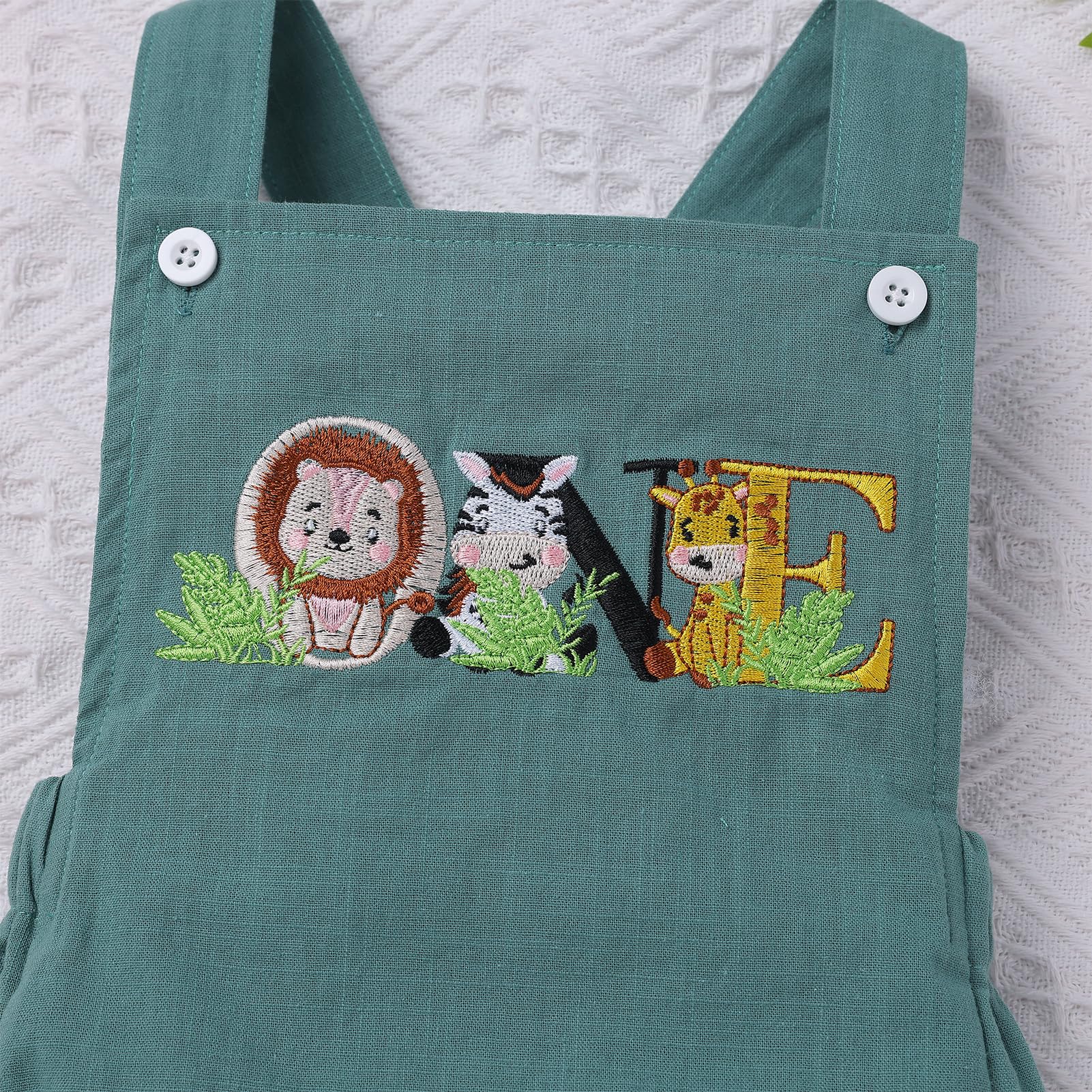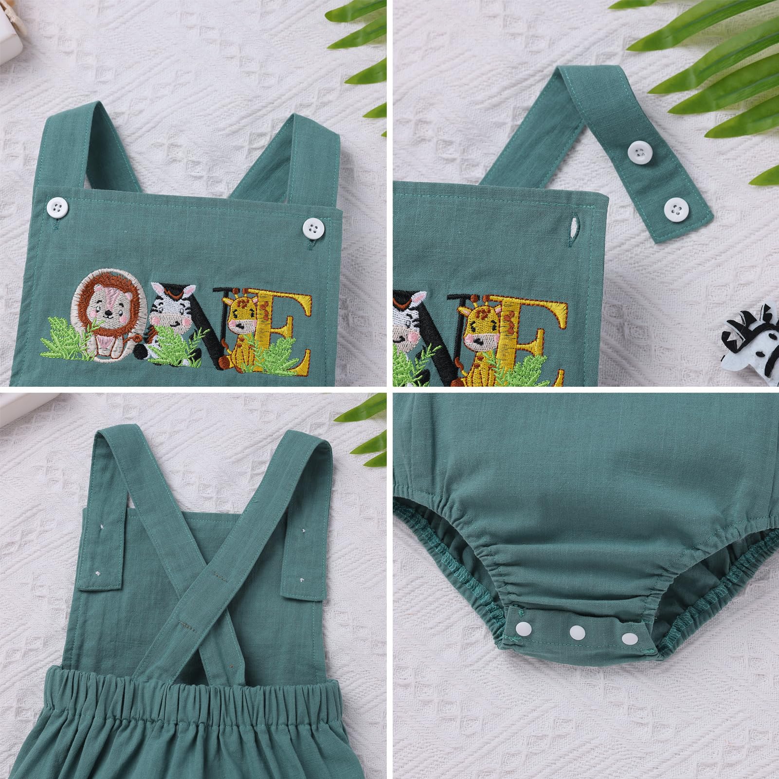 Boho Birthday Outfits for Baby Boy Girl: Adjustable spaghetti straps square neck jumpsuit, each shoulder strap with two buttons, adjust the tightness through the buttonholes. Elastic band at back, adjustable straps that crisscross in back, allows for a customized ease and fit to different body shapes. With 3 snaps at the crotch, easy to change diapers. Embroidered with the letter "One" on the front, adorable as 1st birthday outfit, baby photoshoot outfits boy girl for toddler;