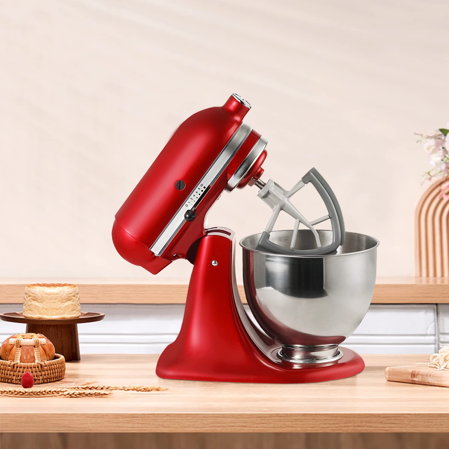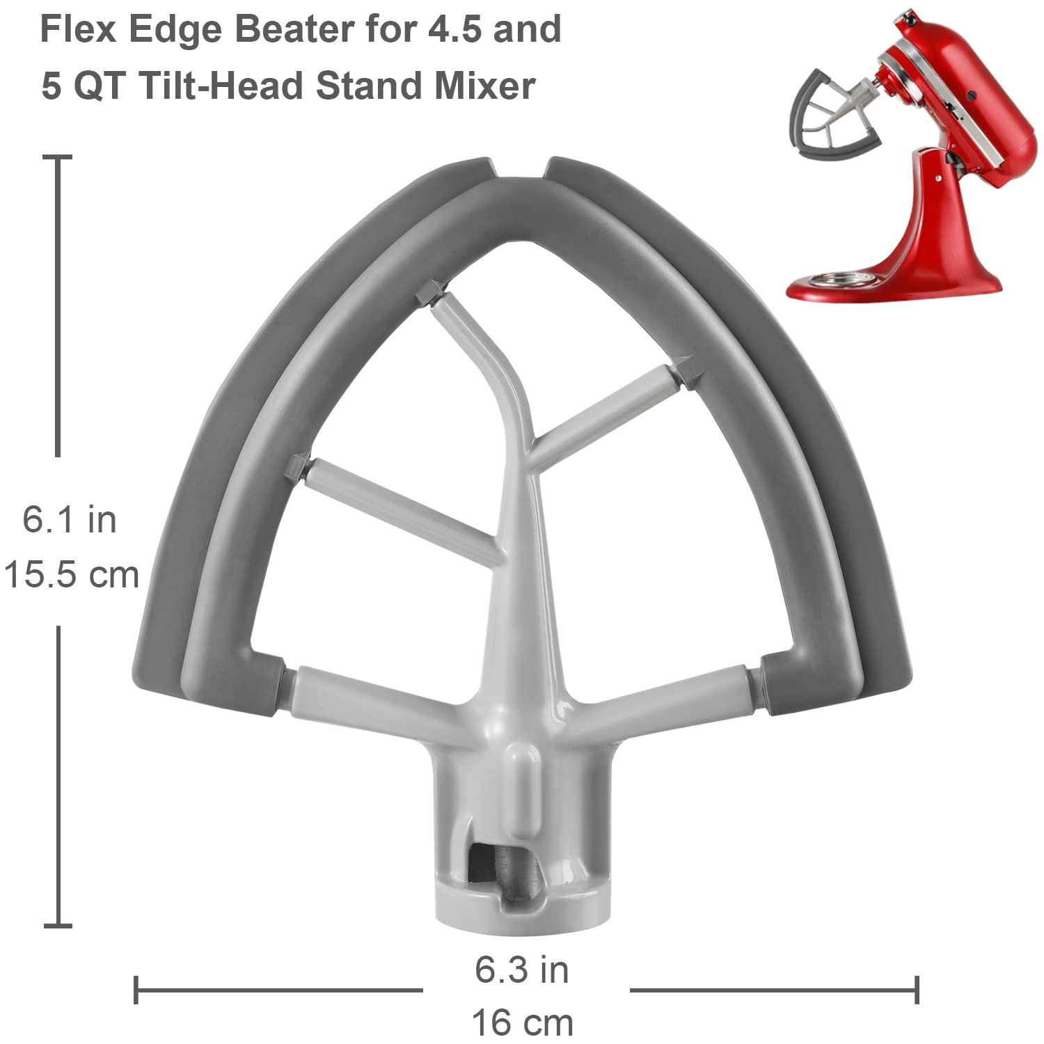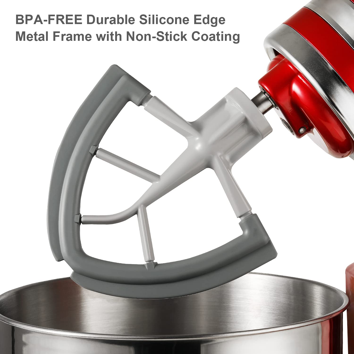 Flexible Edge Beater: Flex edge beater is made of non-stick coated metal construction and flexible silicone edges for heavy duty and high durability. This mixer scraper paddle can continuously beats, scrapes and mixes ingredient side and bottom ensure mixing is done thoroughly without scratching your mixing bowl and cuts mixing time by as much as 50%.