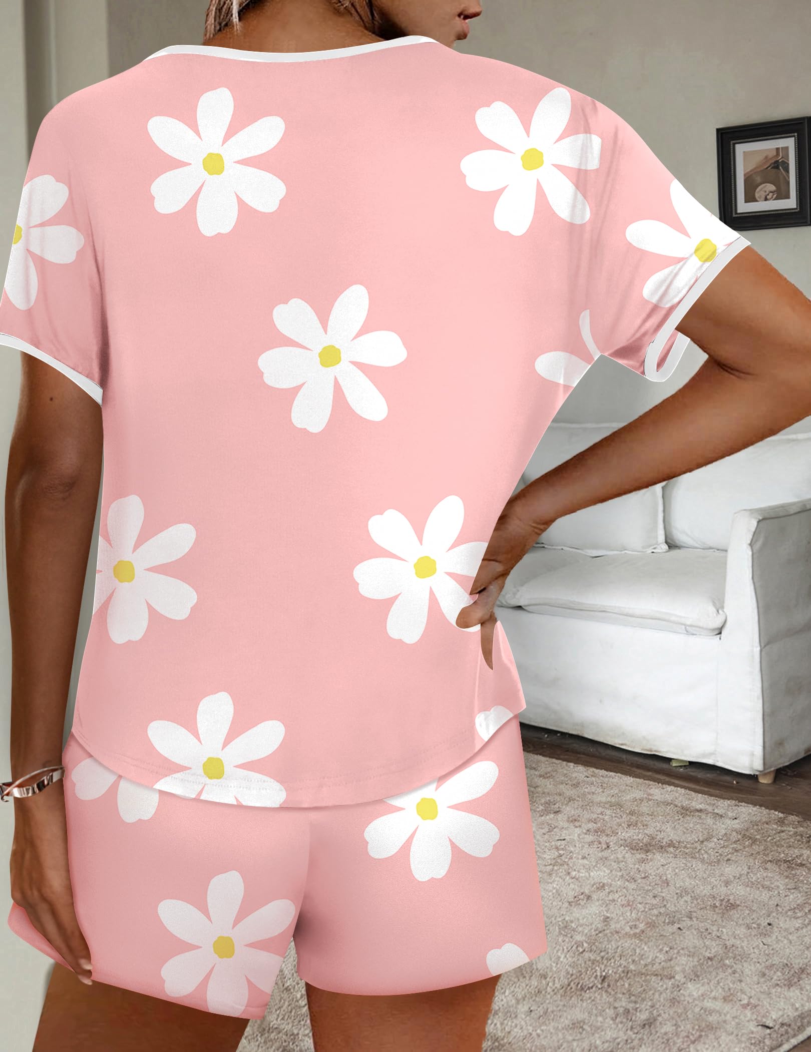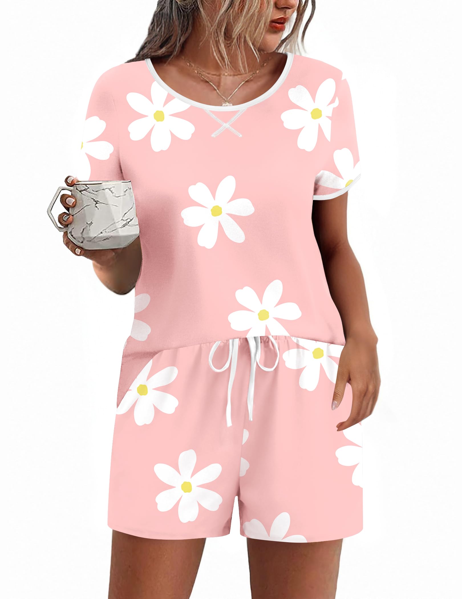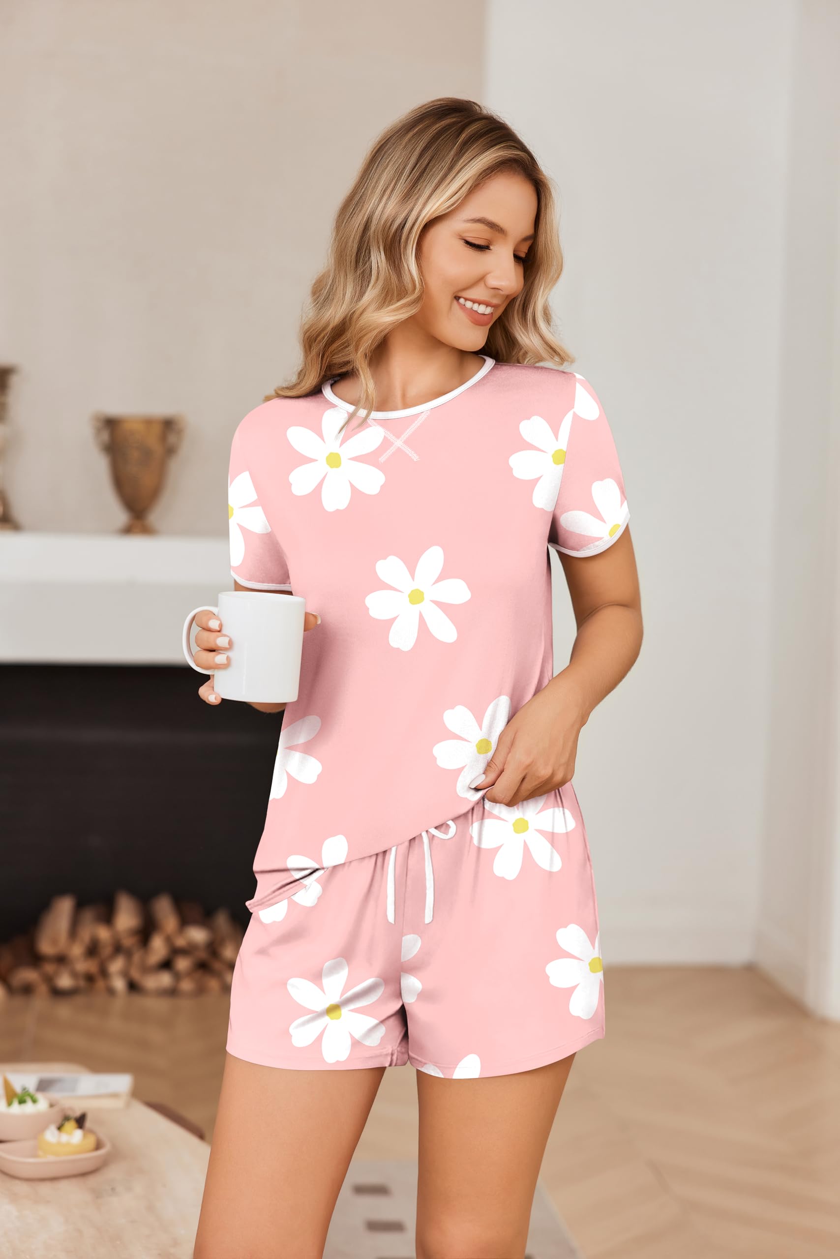 Two Piece Pajama Set: Top- with Round-neck,short sleeve,stylish color block, Pj Short- with Elastic waist,classic plaid & print,which suitable for every age group. Nice design Short Pajama Set for a relaxing day and night