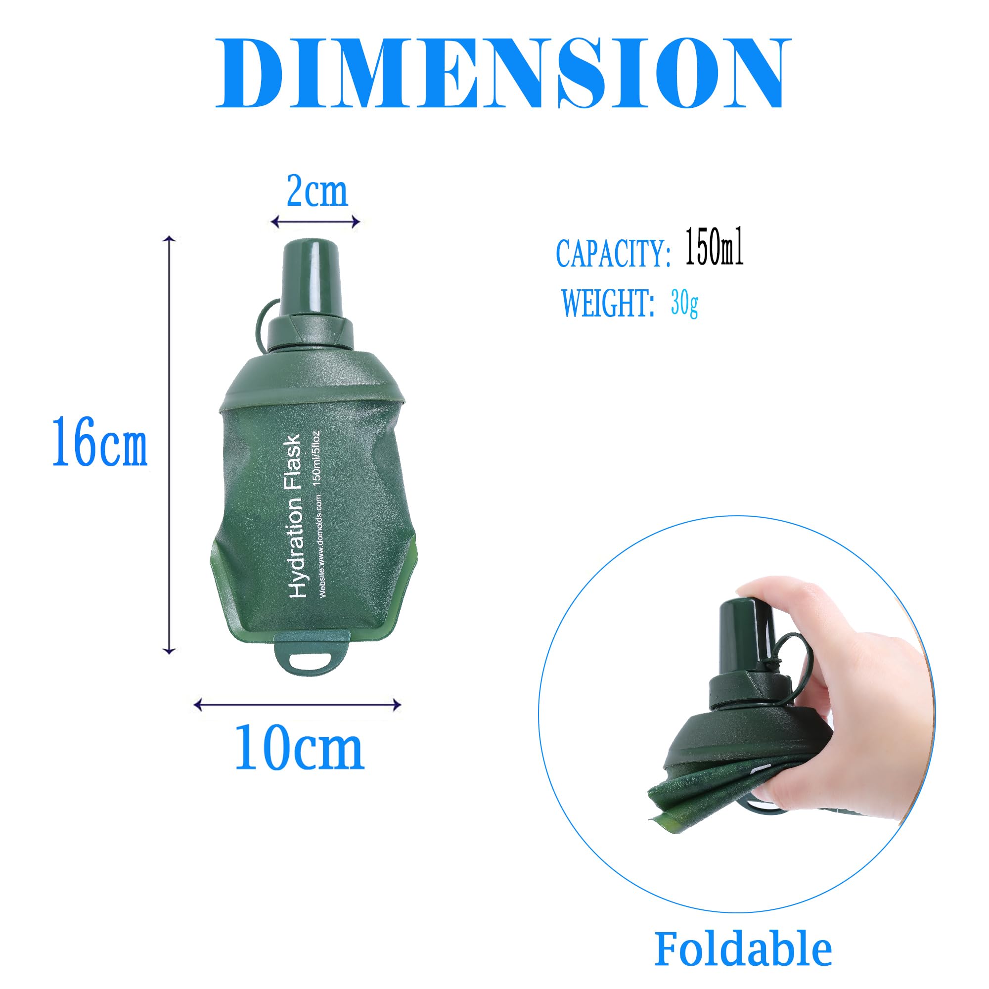 Foldable running water bottle is easy to carry whenever empty or full. It is ideal for hydration running vest and hydration waist belt. Soft flask can be used by adults and children, men and women