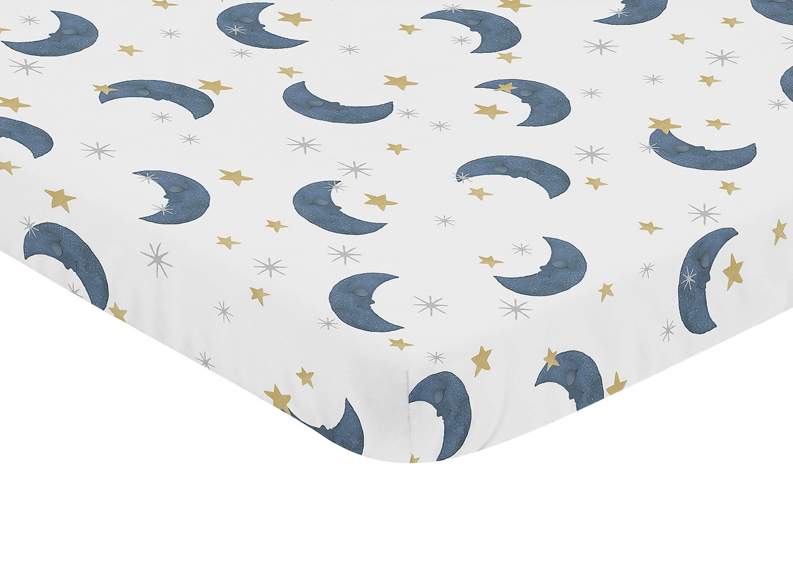 Brushed Microfiber - Navy Blue and Gold Moon and Star Celestial Print