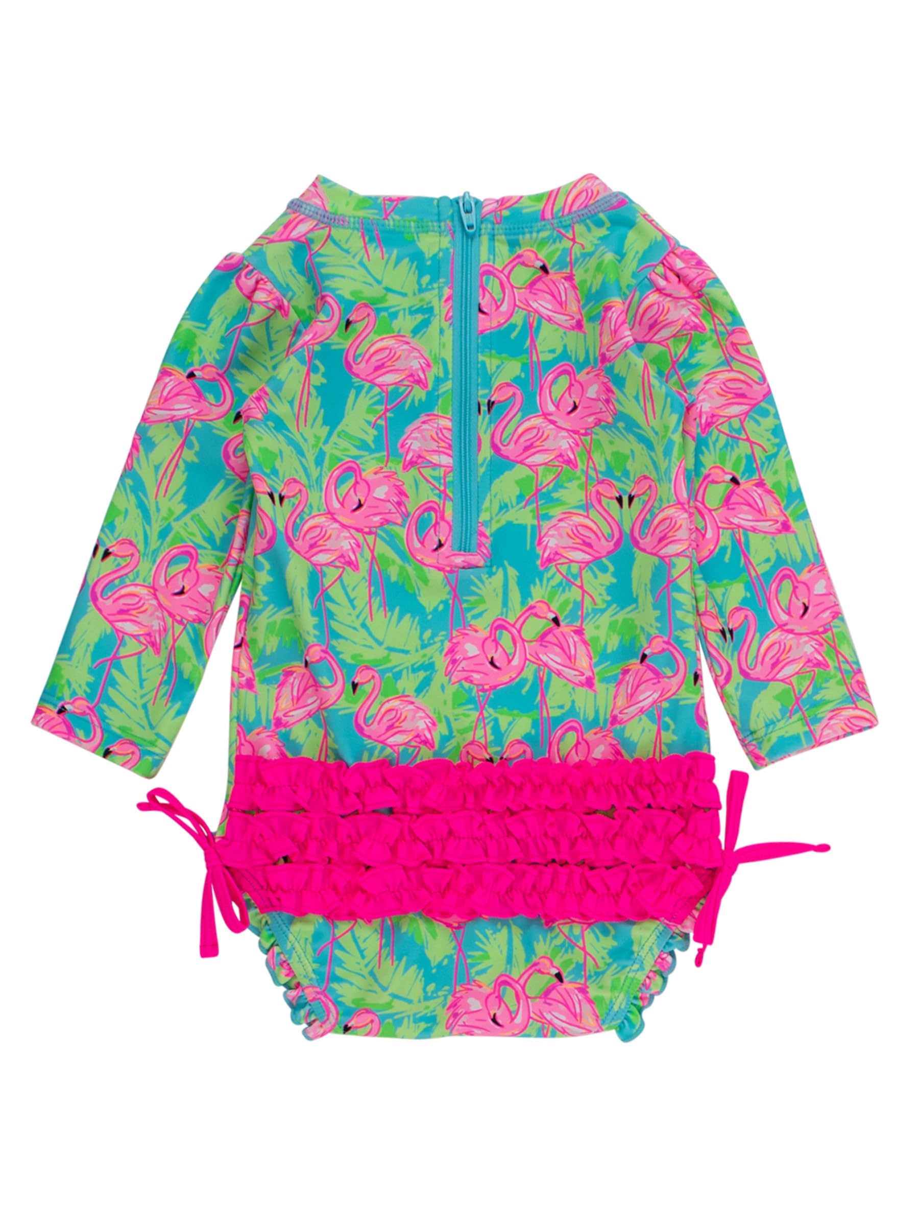 Description A wonderful addition to your little girl's swimwear, this Tropical Baby One Piece Rash Guard is comfort and style rolled into one. Unlined with snaps at bottom that make for easy changing. Made with sun protected fabric for all day protection and comfort.