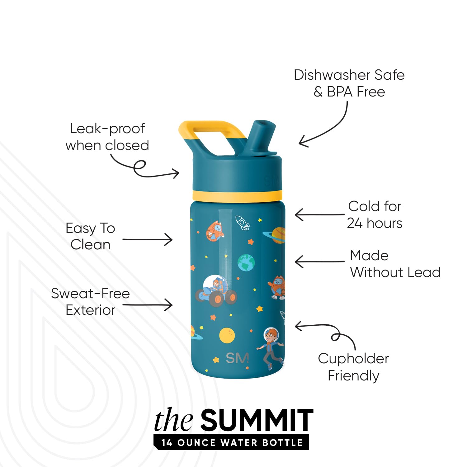 The Simple Modern Summit with Straw Lid for Kids is the perfect vessel for toddlers and youngsters. This dishwasher safe vessel comes with a leak proof straw lid. Double walled, vacuum insulated 18/8 stainless steel keeps your child's water or milk cold for hours.