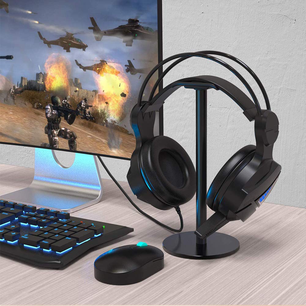【EASY TO ASSEMBLE】Combi of three parts,Just clips 3 parts into a sleek headphone holder within 30 seconds, giving the perfect centre of gravity to keep the headset holder upright and you have a nice presentable headphone stand,fast to detach it when not in use, put it in your drawer, book shelf, etc., or bag when travelling, with TINY space taken only. 【STURDY】Aluminum alloy center pole of the headset stand is sturdy and slender; Rubber stabilizers underneath grip the surface and keep the whole stand sitting safely while holding your headphones; Soft and protective rubber at the top prevents any scratches or damage with its cushioning effect. High-grade ABS & TPU rubber Material, safe and durable. 【Soft TPU Pad Protection】The headset holder's pad works as a cushion to protect your headphone headband from deep crease even after long time hanging. Flexible headrest made with a flexble TPU rubber, headrest to form to your headphones;holder work with almost size headphones form small to large. 【Suitable for Most Headphones】: It fits most headphones with a headband width within 1.7 inch/4.5 cm and device height within 8.85 inch/22.5 cm such as Bluetooth Headphone, Active Noise Canceling Headphone, Gaming Headphone, Telephone Headset, Children Headphone and so on. 【WARRANTY】3 YEARS Warranty, If you have any problem or suggestion, please kindly contact us freely. Your satisfaction means all to us.