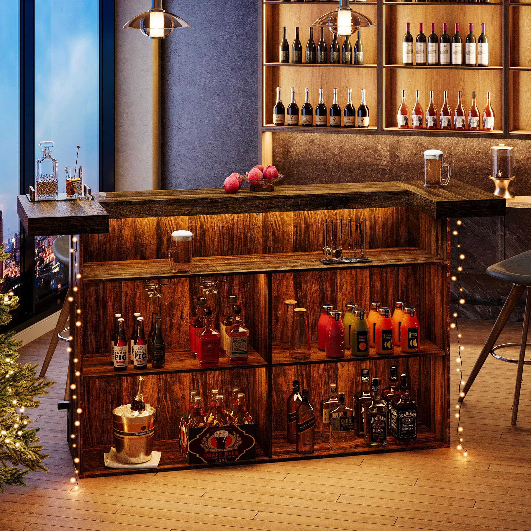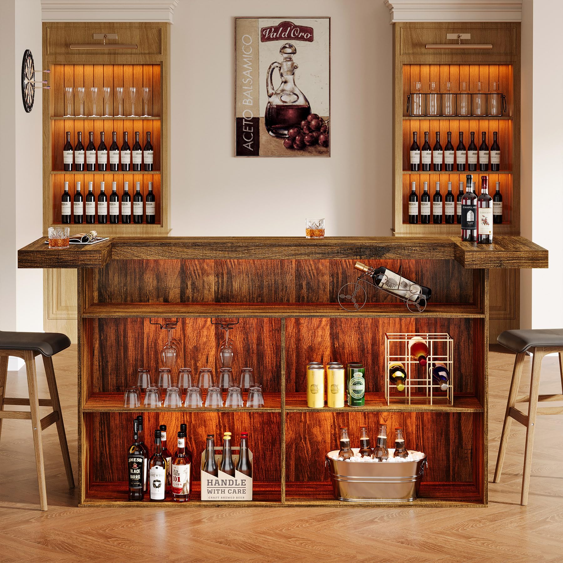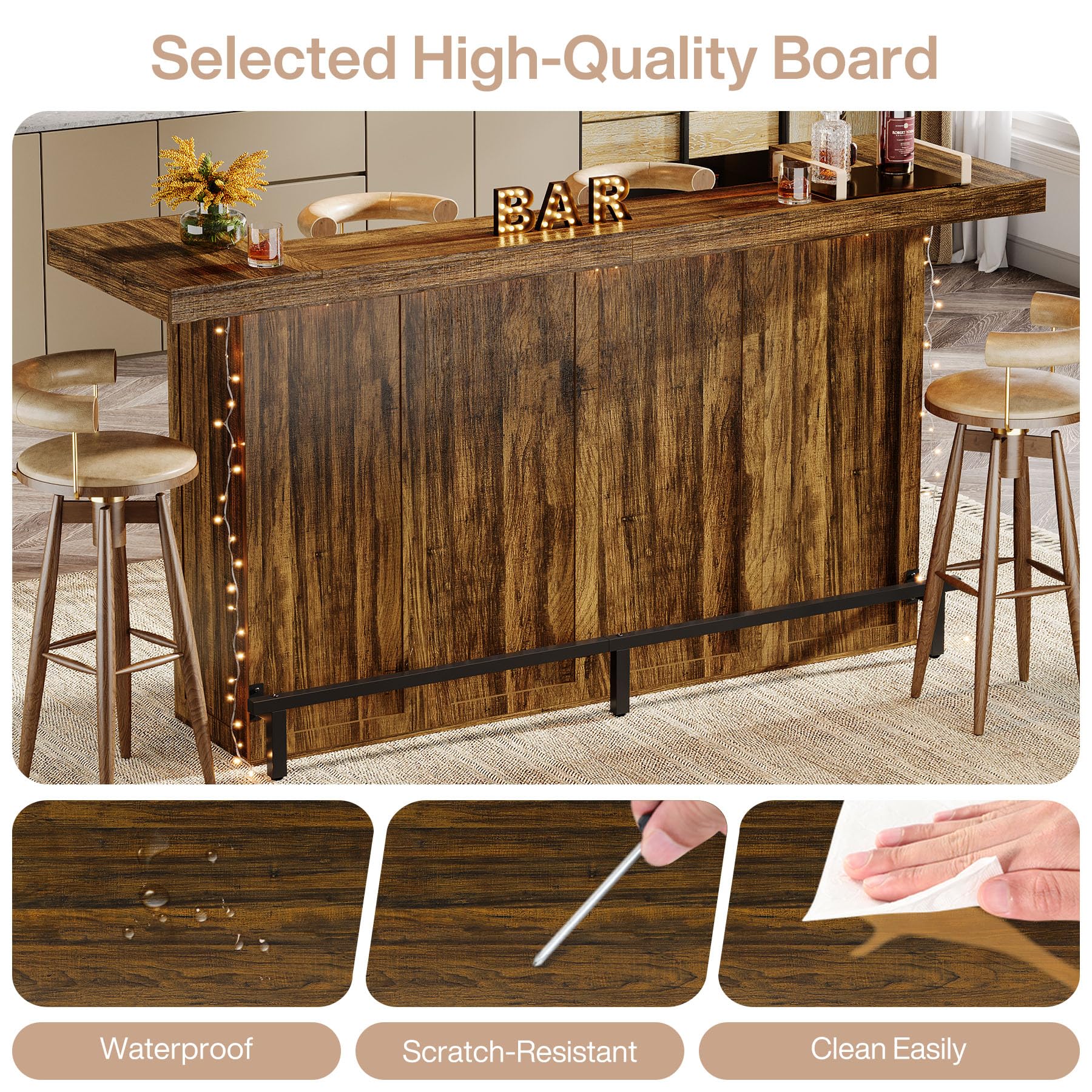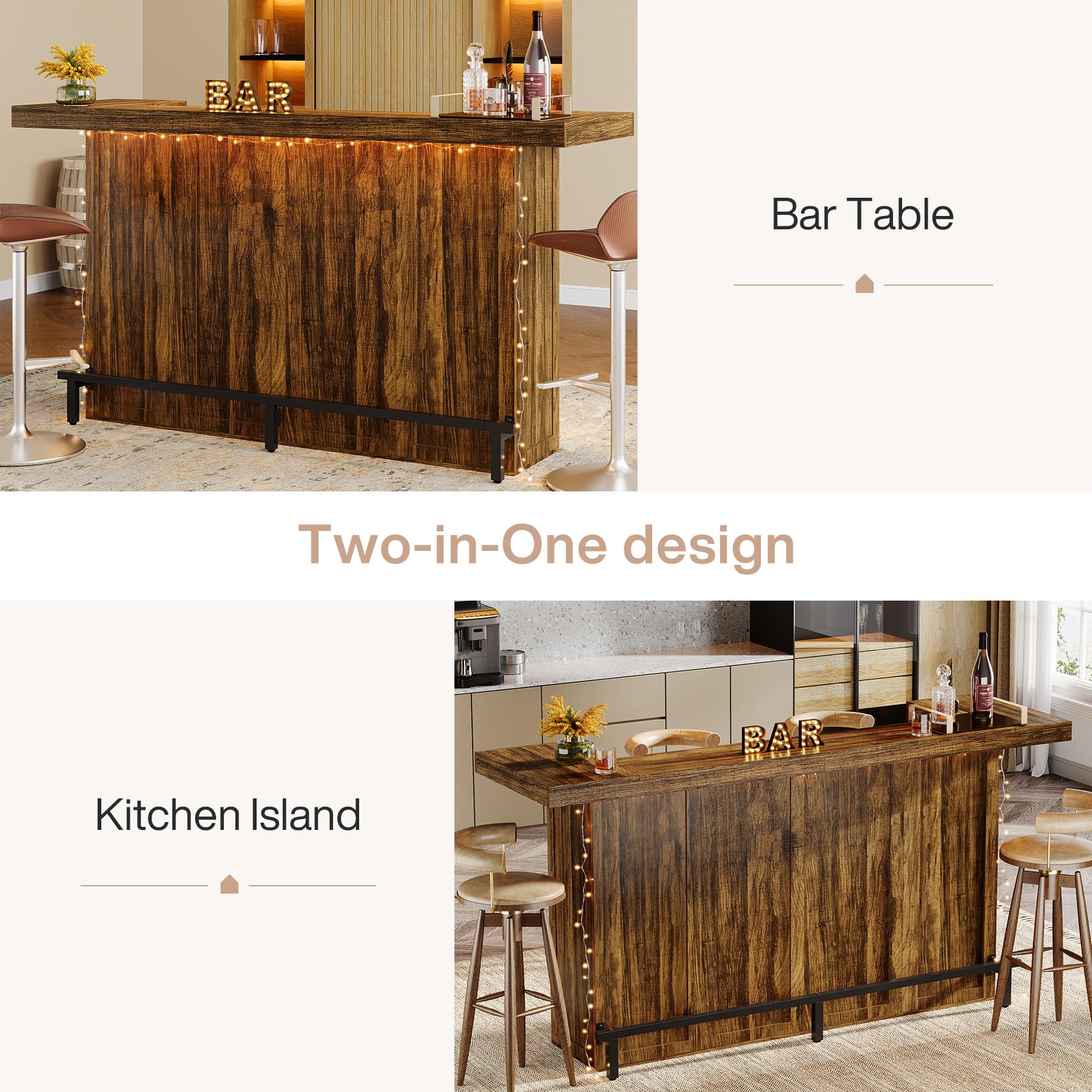 Comfortable Footrest Design: The black metal footrest not only adds a touch of sophistication to the tribesigns home bar unit, but also provides a comfortable place for people sitting at the bar to rest their feet, allowing them to enjoy a drink more relaxedly