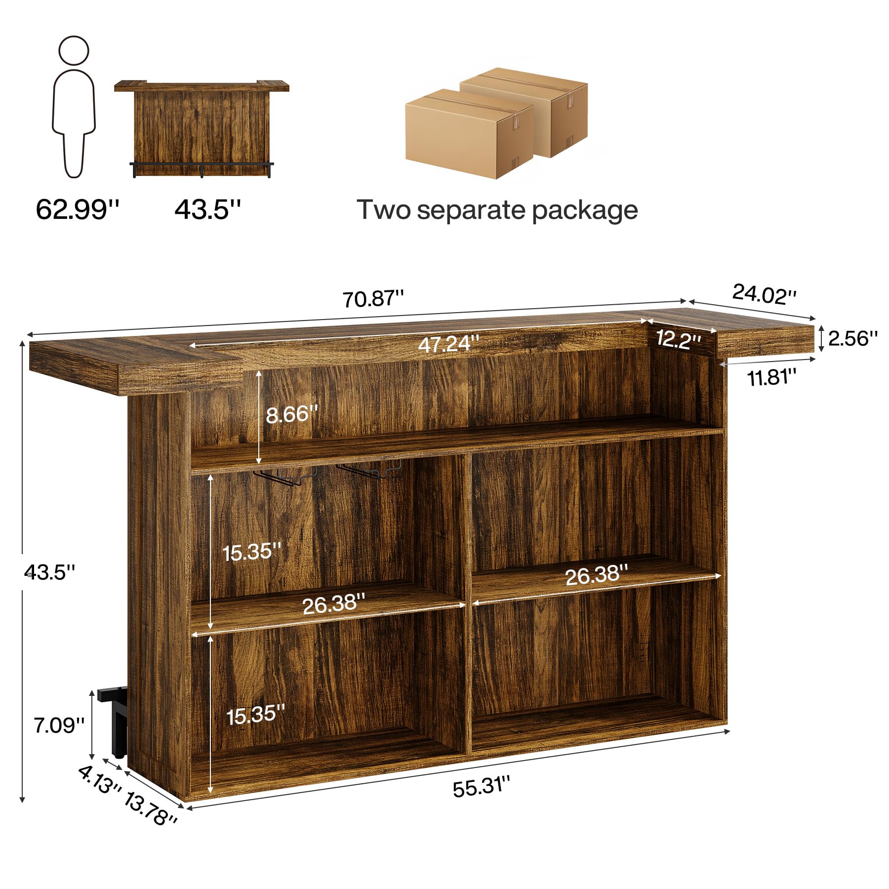 Stable and Sturdy Structure: Made of high-quality wood, this bar unit has an enduring structure that can support the weight of various items without sagging or shaking. It is suitable for both residential and commercial use, from home to busy bar