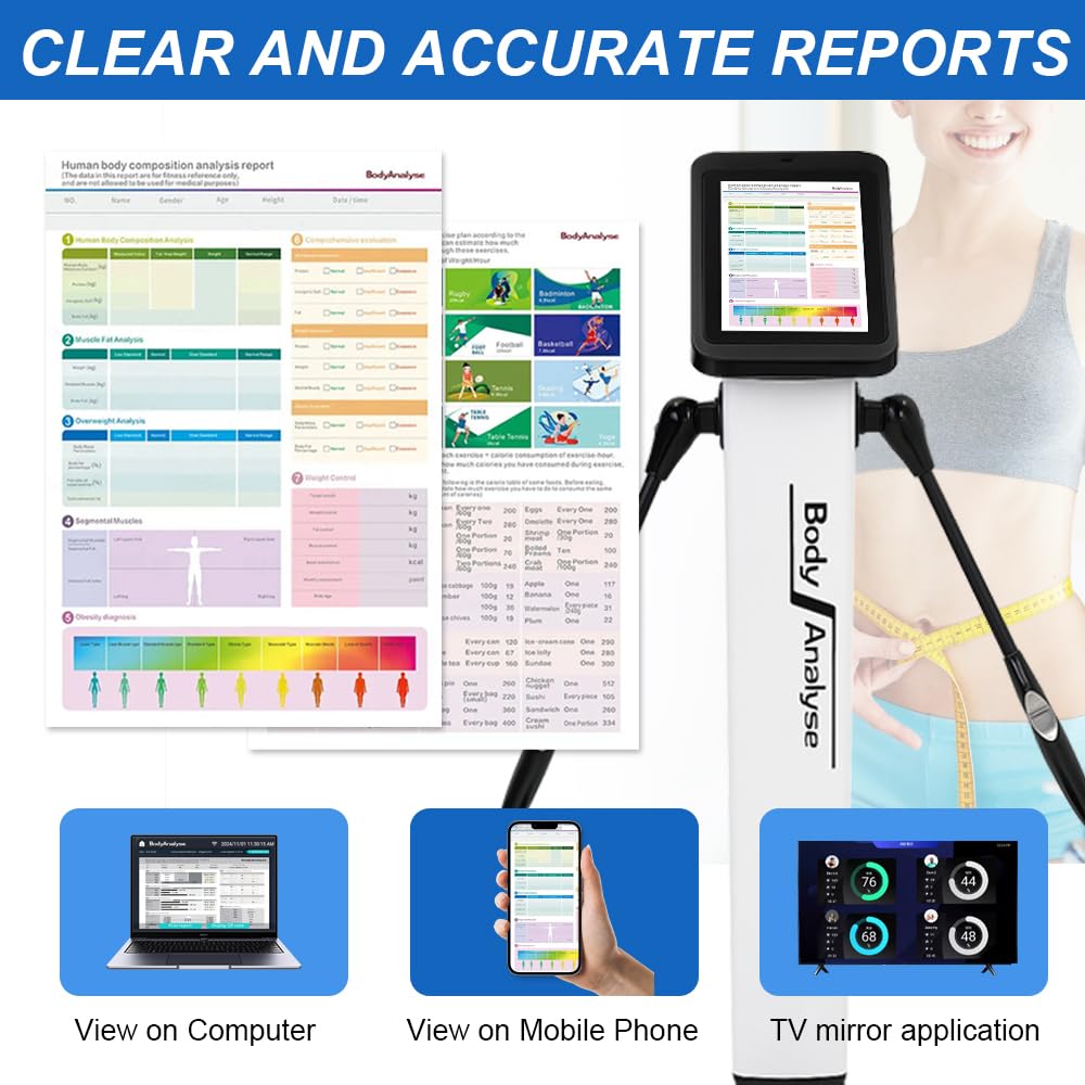 【PORTABLE ANALYZE DATA】:Body Scanner Portable Device Easy To Fold, Can Be Placed As a Car Backup,Multi Terminal Report Viewinganalyze Data Anytime, Anywhere Integrated Circuit/Smooth Operation/Digital Wechatmini Program/Computers Can View And Read Reports Accurately,Body Fat Analyzer Reasonable Distribution Of Bodycomposition Data, More Intuitiveand Clear At a Glance