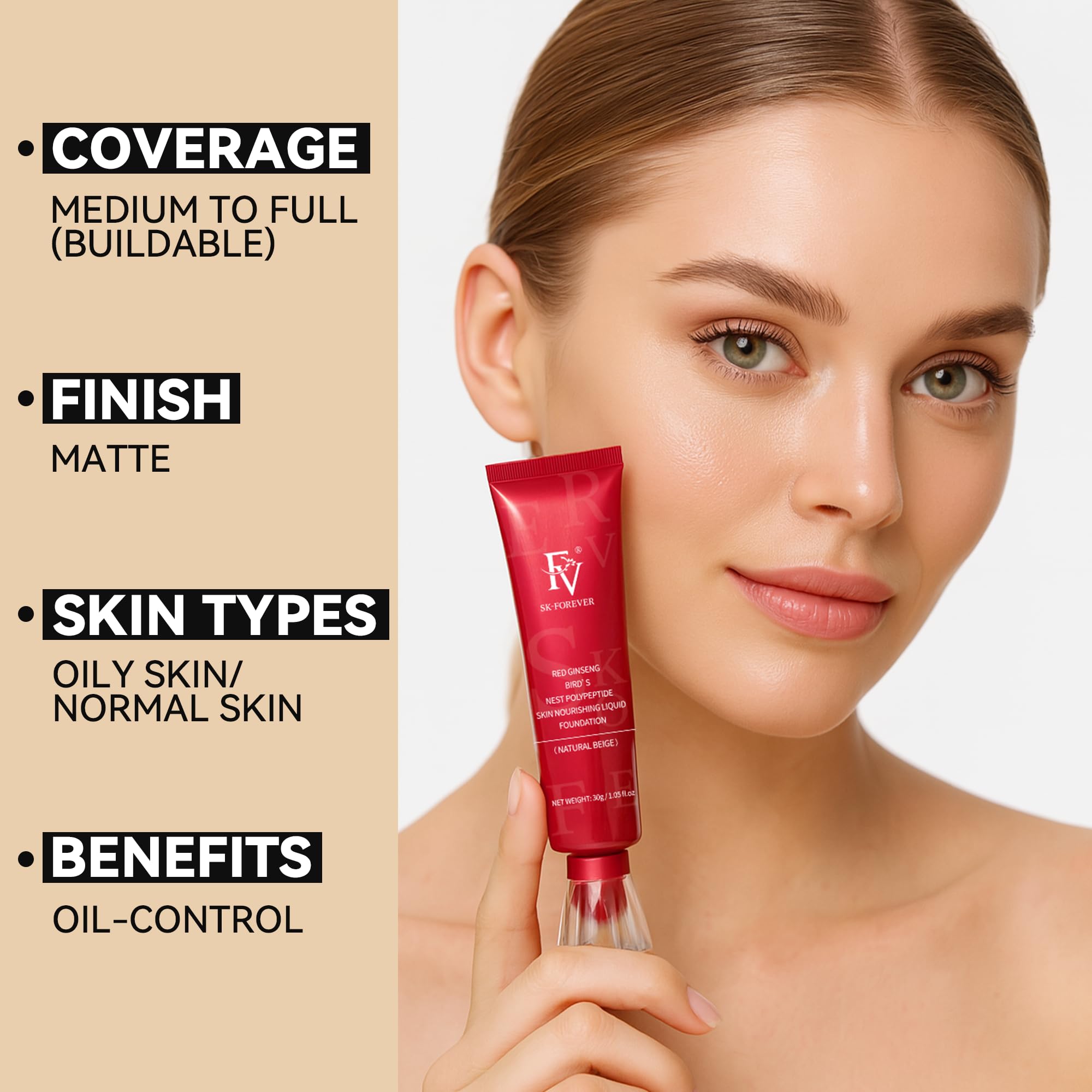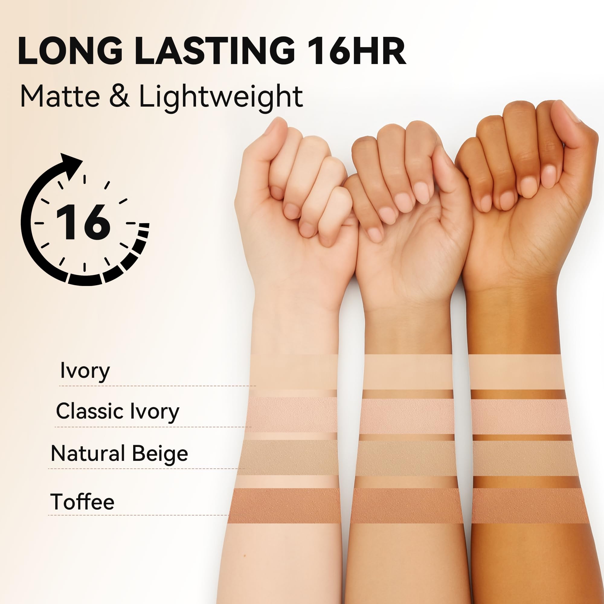 BUILD IDEAL COVERAGE: FV matte foundation with medium to full coverage effectively evens out skin tone, covers blemishes and other imperfections on the skin. The liquid waterproof foundation, with a smooth formula, feels weightless and looks flawless, without worrying about caking.