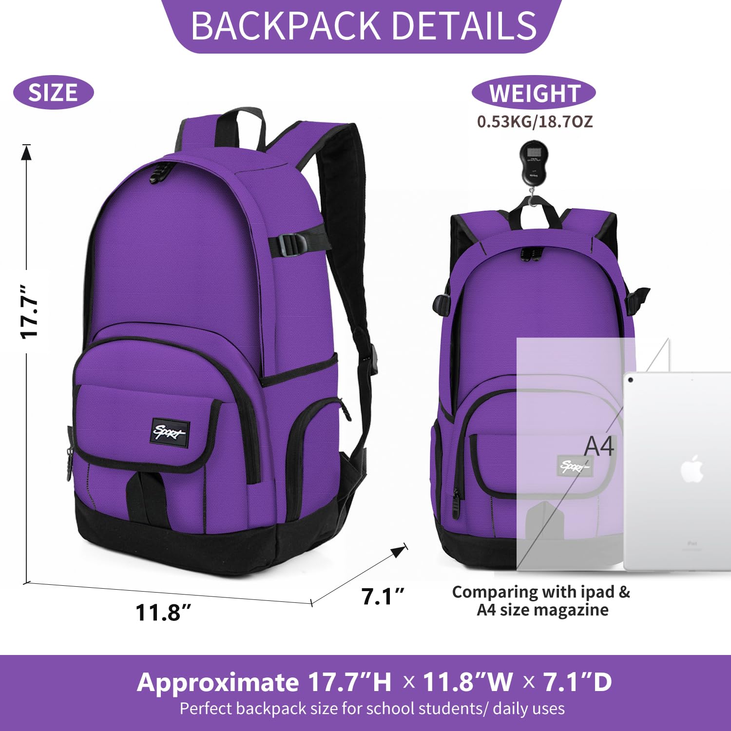 Description Flexible and ample storage space with scientific and reasonable layout design in Ricky-H’s conveniently portable bag makes getting out the door in the morning much easier. Multipockets layout allows small items (eg. Phone, pens, keys, chargers, power bank, sunglasses, ect.) and big items (eg. Laptop, A4 binders, textbooks, notebook, lunch box, sweater, towel, ect.) being organized neatly. -Suitable Occasion: School, Travel, Camping, Hiking, Gym, Office, Gift, Versatile. Whether to cater your day-to-day organizing basis or your "extra-curricular" uses, our backpack is versatile enough for many use, to be a book bag during the week and a travel backpack on weekends. Great choice as school bookbag or daypack, overnight backpack. Or even as diaper bag. -Applicable People: Men, Women; College/University Campus Students, High school, Middle school, Elementary, Primary school boys & girls; Parents, ect.)-Comfort with featuring ergonomic designed adjustable padded reinforced shoulder straps, makes the backpack all day use as a breeze. -High-quality, strong, long lasting nylon fabric builds our sturdy and solid backpack with great performance on water-resistance, anti- striking and anti-scratching. -Twin metal zippers with fabric flaps over to keep water out of the backpack and last much longer than plastic ones. Easy at opening and closing the backpack.Double stitching at stress points adds valuable security to seams, handles, and straps, enhancing the durability. And additional top handle provides extra help while lifting or moving the backpack. *Notes:1. Differences of 0.5-1 inch may occur due to manual measurement. 2.Item color displayed in photos may vary slightly from the actual product due to monitor color settings.
