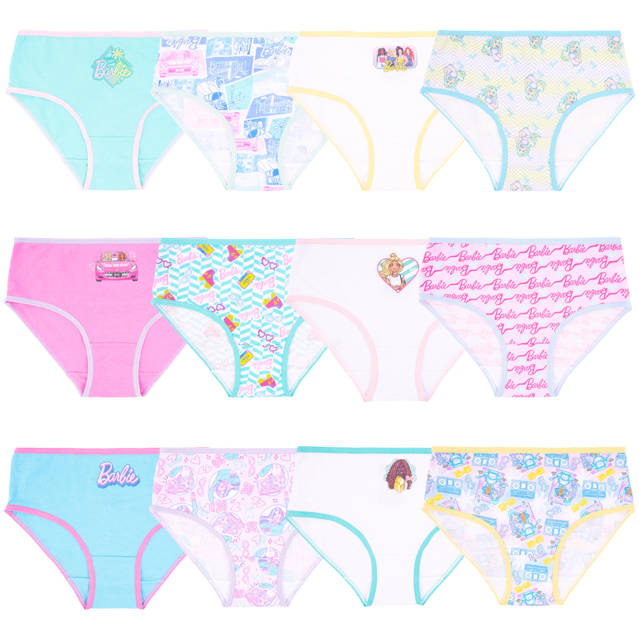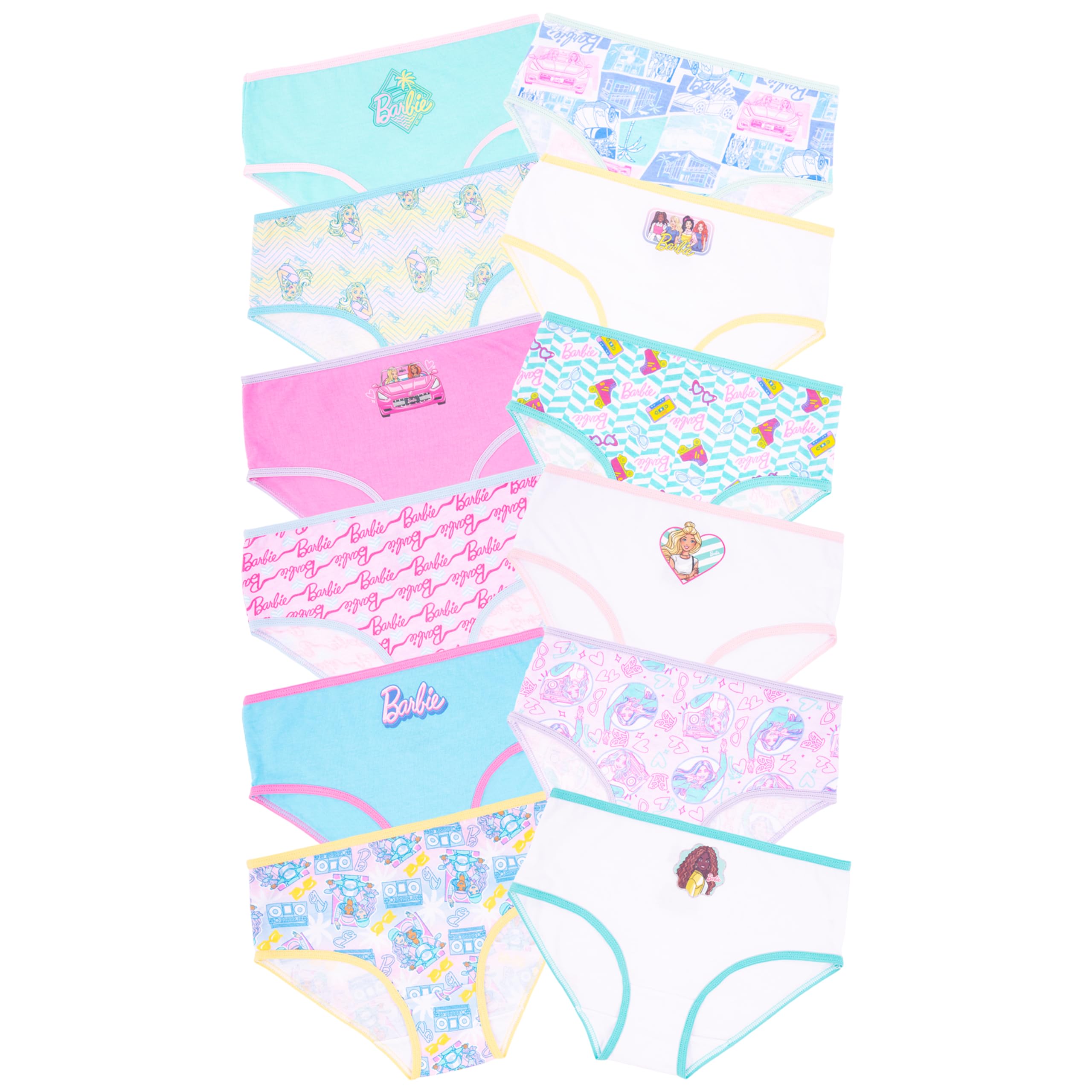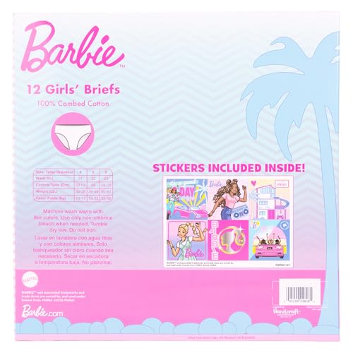 Description Celebrate every stage of her journey with the Barbie Girls’ Underwear Collection, a playful and empowering assortment available in three exciting formats. Choose from a classic 10-pack of 100% combed cotton panties with bold Barbie graphics, a 4-pack of athletic-style girl shorts made from a soft poly blend with a cotton gusset for active comfort, or a magical 12-pack advent calendar surprise box styled like Barbie’s iconic Dreamhouse. From everyday essentials to training time triumphs, this Amazon exclusive set is crafted with tagless interiors, brushed waistbands, and fun, colorful artwork of the world's most iconic doll. The Dreamhouse surprise box even includes a potty training chart and success stickers to keep the journey upbeat and rewarding. Whether she's just learning or already leading her world with Barbie flair, this collection helps every girl feel confident, comfy, and inspired—one stylish pair at a time.