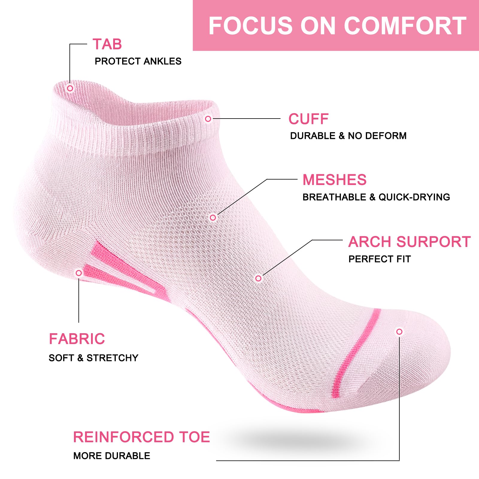 【 Arch support & Heel Tab Design&Mesh Design】: These women's low cut socks will be good sport socks and casual for women.The arch support and heel tab designs will prevent socks from slipping off and heel injuries.The mesh ventilation structure that keeps your feet dry and comfortable by cooling heat and reducing moisture.Moisture-wicking design ensures maximum dryness and protects your skin.