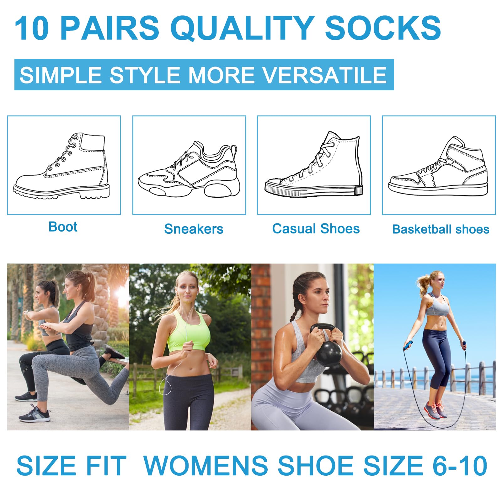 【Durable & More Pairs】:These womens athletic socks are lightweight and durable.The fabric of the socks will not pilling or fade even after multiple washes.10 pairs socks for women can meet your socks needs for a long time.