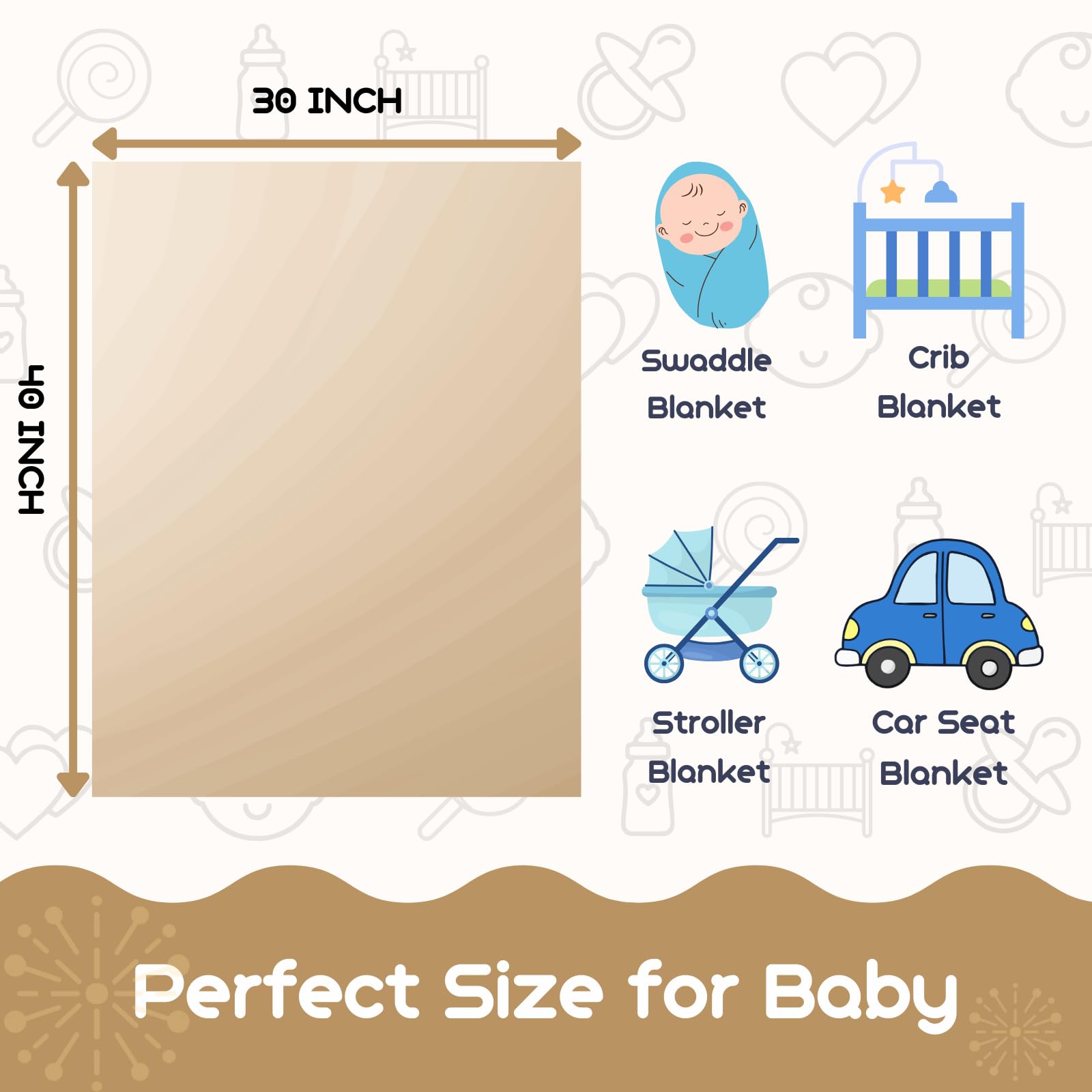 Multifunctional Blanket: In addition to being used as a bed blanket for babies, it can also be placed in strollers and car baby seats, used as a travel blanket or play mat. The just right size makes it very easy to pack and carry