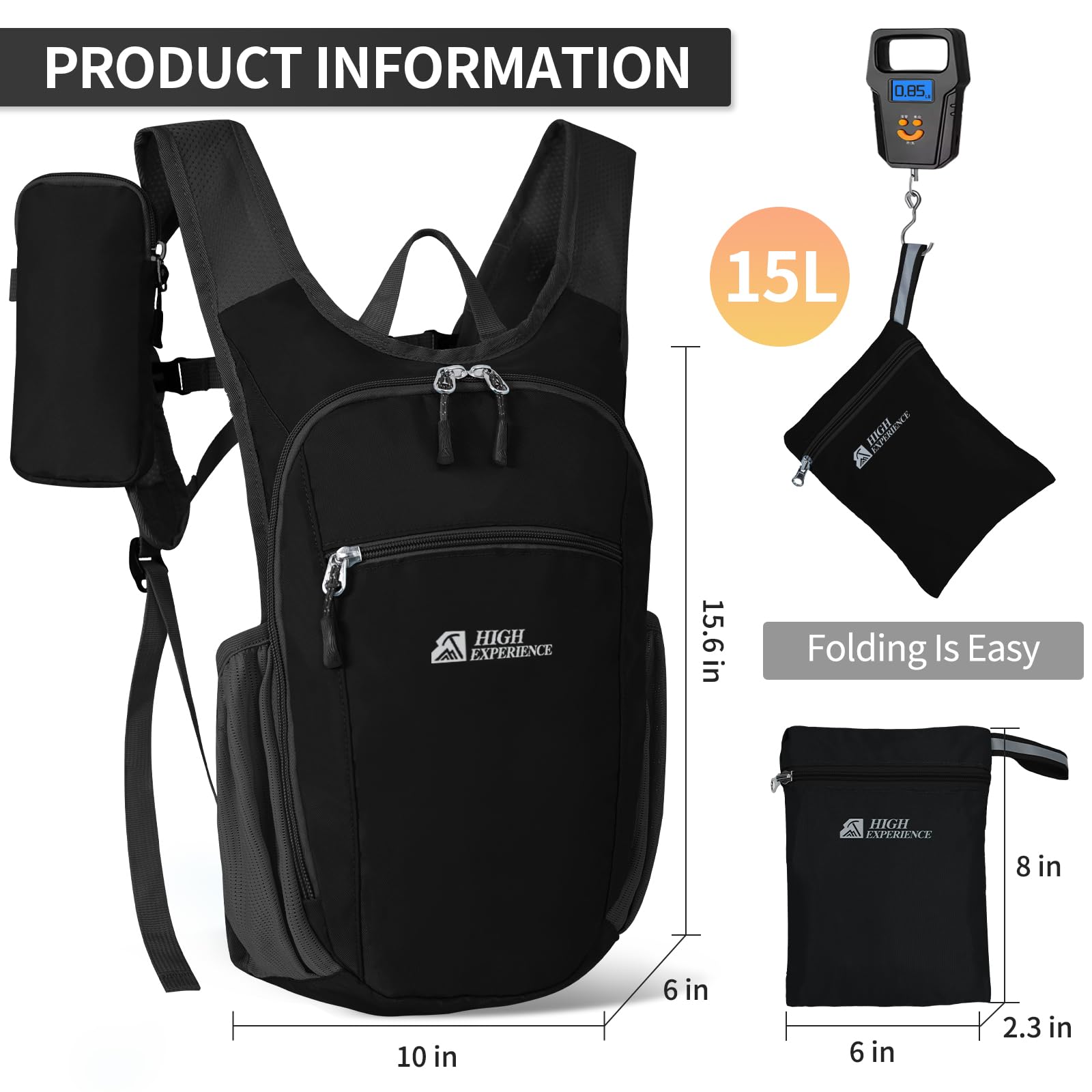 LIGHTWEIGHT AND FOLDABLE: This foldable hiking daypack has a capacity of 10L, weighs only 0.77LB, and the folded size is only 5.9"x7.5"x2.3", the hiking backpack is lightweight, small in size, easy to carry, and it's enough to allow you to carry some of your daily necessities with you.