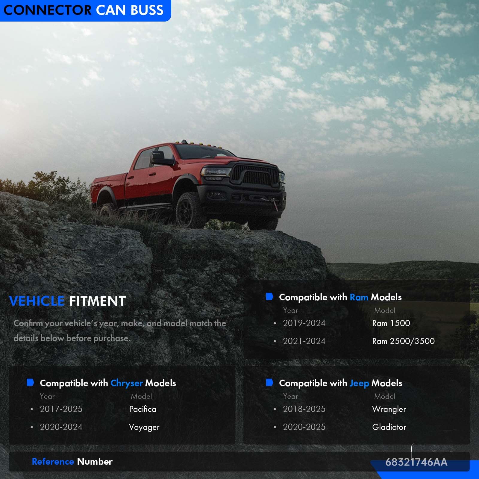 [Vehicle Fitment]: Compatible with Jeep Wrangler JL 2018-2025, Gladiator JT 2020-2025; Compatible with Dodge Ram 1500, 2019-2024 Ram 2500/Ram 3500 2021-2024; Compatible with Chryser Pacifica 2017-2025, Voyager 2020-2024