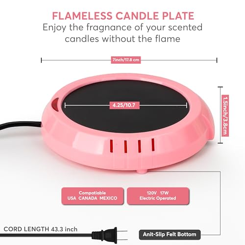 SAFELY RELEASE CANDLE SCENT: This large electric jar warmer allows you to safely enjoy the beautiful smells of your favorite candles without ever having to see or worry about a flame. The warmer heats up to slightly melt the wax and release the scent. The warmer has a 4.25inch diameter making it perfect for the typical 4-inch candle. Plug in electric cord length is 1.1m (43.3 inches)