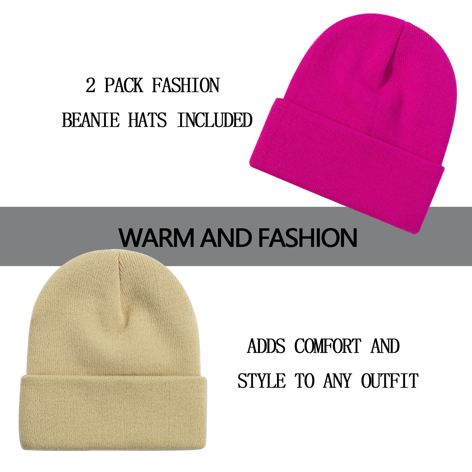MUST HAVE BEANIES - This stylish beanie hat can match any kind of your outfits. 2pcs hats provide more color options, which can meet almost all your needs for clothes matching, you can pick your favorite beanies to go with your clothes