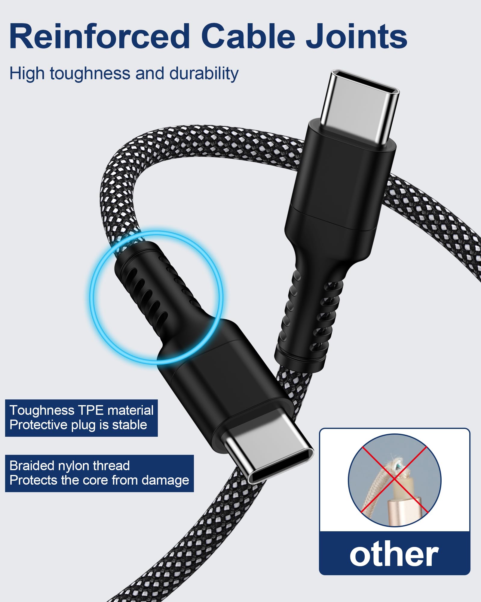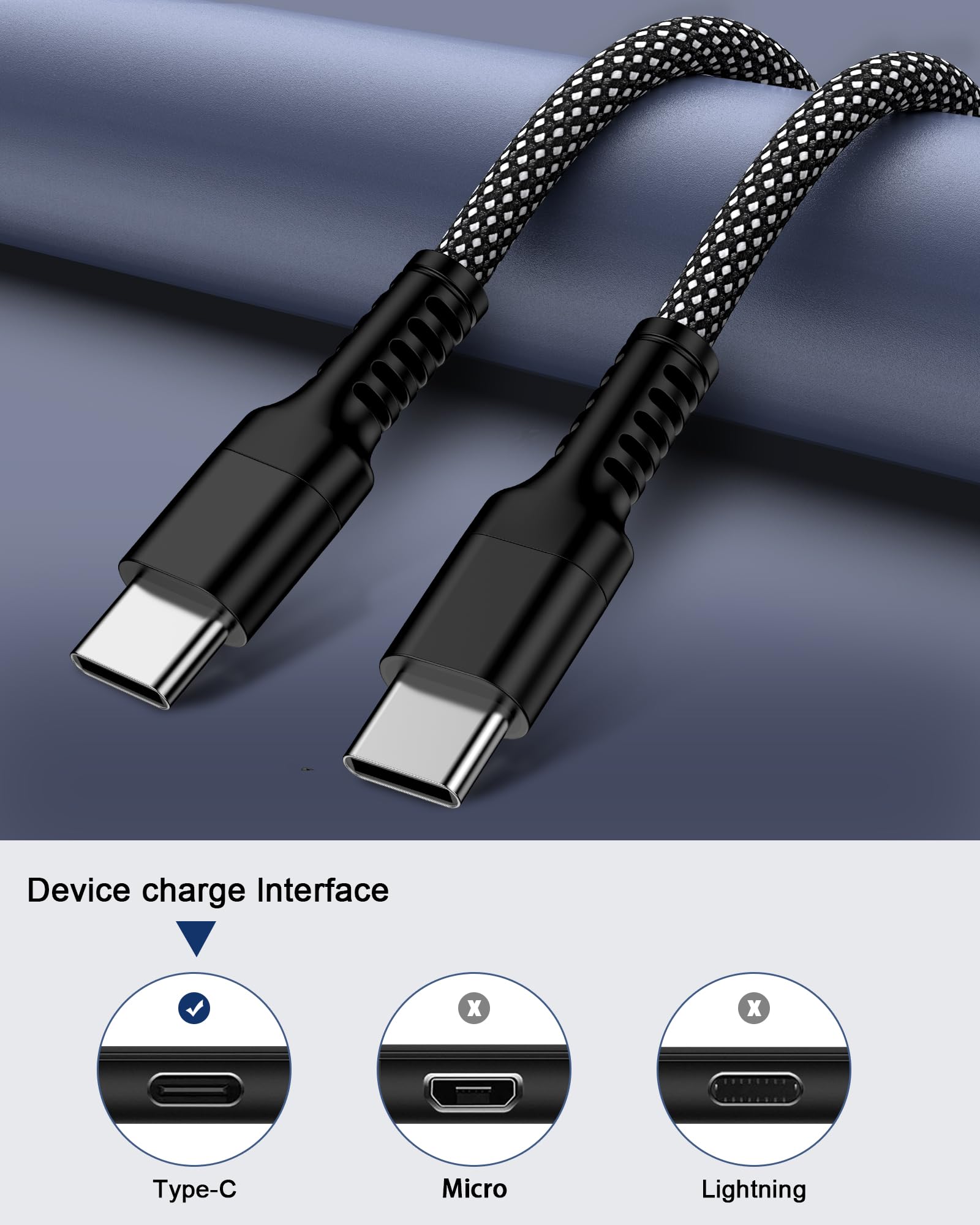 Compatibility ---Compatible with iPhone 17/17Pro Max/Air/17 Pro/16Pro/16Plus/16/16e/16 Pro Max/15Pro/15/15 Pro Max/15 Plus; ---Compatible with iPad Pro 13 inch/iPad Pro 12.9 inch 6th 5th 4th 3rd/iPad Pro 11 inch 5th 4th 3rd 2nd 1st; ---Compatible with iPad 11/10, iPad Air 6th 5th 4th, iPad Mini 6; ---Compatible with Samsung Galaxy S25 Ultra/S24/S23/S23 Ultra/S23 FE/S22/S21 Ultra/S20 FE/Note 20 Ultra/Note 10; ---Compatible with Samsung Galaxy A17/A16/A15/A14/A56/A55/A36/A26/A25/Z Fold 7,6,5/Z Flip 7,6,5; ---Compatible with Google Pixel 10 Pro/10/9 Pro XL/9/9 Pro/9 Pro Fold/8/8Pro/7/7Pro/6a/ 6/6 Pro/ 5/5a 5G/4a 5G/4a/4; ---Compatible with LG K92 5G/ K71/K62/K6/K52/K42/Q92 5G/Q6/Q52 , Moto and more usb-c devices Specifications ---Color: Black ---Material: Nylon Braided ---Output: 60W ---Package Include: 1* USB C charger cable ---Guarantee: 12 Month Warranty Features Fast Charging: The maximum current of the cable can be up to 60W, it can power up iPhone 16 from 0% to 50% within 30 minutes. And it also provides 480Mbps data transfer. Durability: Premium Nylon braided is tangle-free and flexible, the high-quality aluminum housing makes the cable more resistant to heat and durable. Ensure a longer service life. High Quality Construction: The usb c iPhone 16 power cord is made of a combination of high-quality materials, it provides stable voltage and current protection to ensure safe charging of your device at the full fast charge. 6 feet Length: USB C Chagring Cable 6ft meets all your charge needs when you are in your bedroom, sofa, office and the backseat of your car which makes your life more convenient.