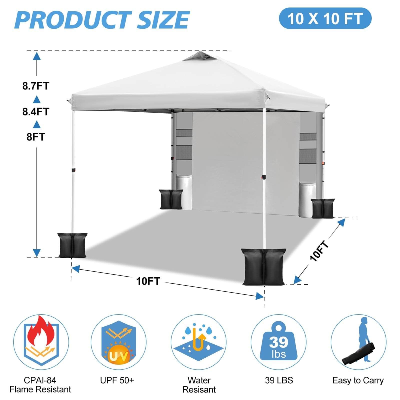 ๐๐ฑ๐ท๐๐๐๐ฎ๐ฏ๐น๐ฒ ๐๐ฒ๐๐ถ๐ด๐ป ๐ฎ๐ป๐ฑ ๐ฆ๐๐ฟ๐๐ฐ๐๐๐ฟ๐ฎ๐น ๐ฆ๐๐ฎ๐ฏ๐ถ๐น๐ถ๐๐: The easy up canopy is height-adjustable via smooth slides on all four sides and red locking clips, with a choice of three heights (8 feet, 8.4 feet, 8.7 feet) to customize the comfort experience. The sturdy steel frame, reinforced with pre-installed heavy-duty bolts, ensures stability during adjustments, keeping the structure firmly anchored