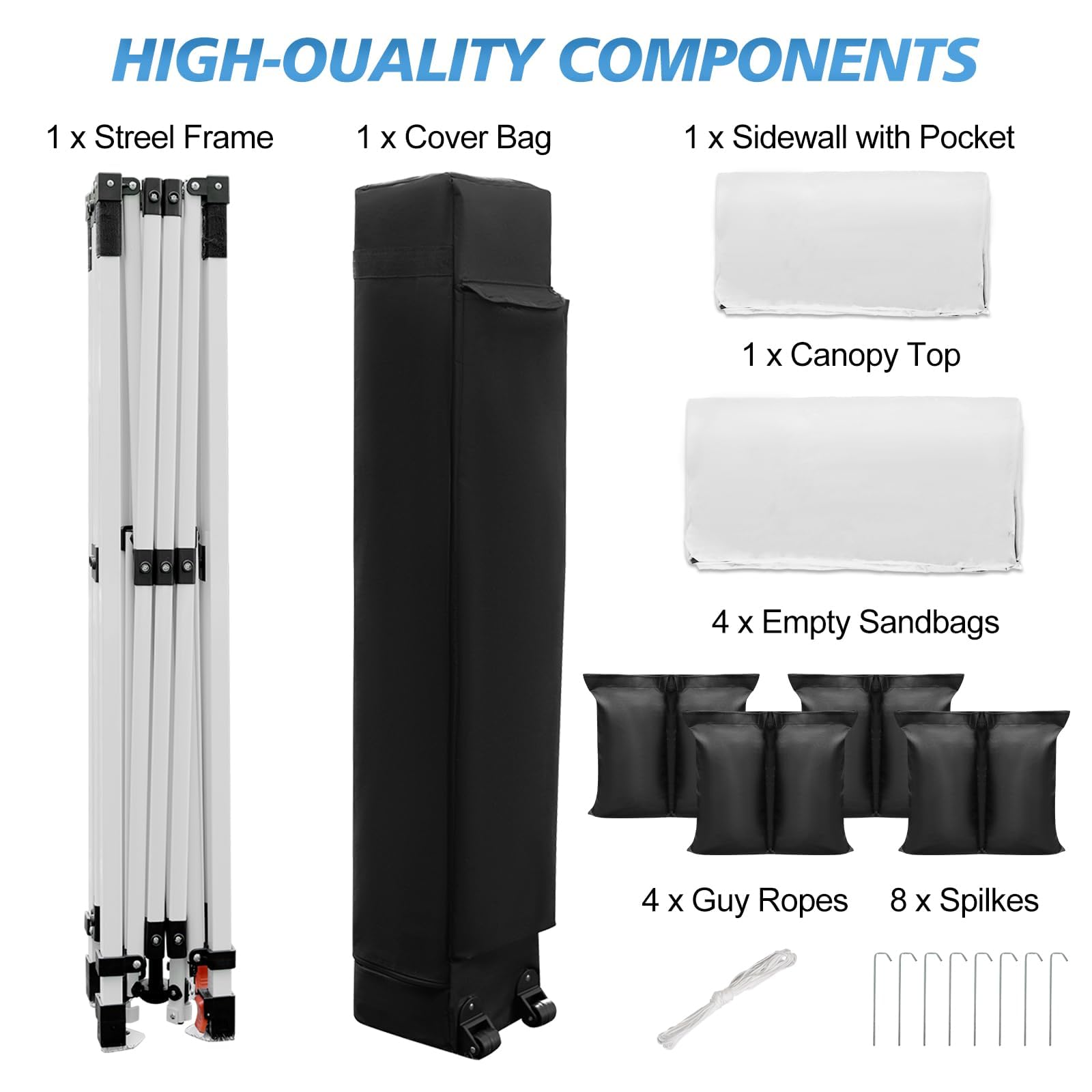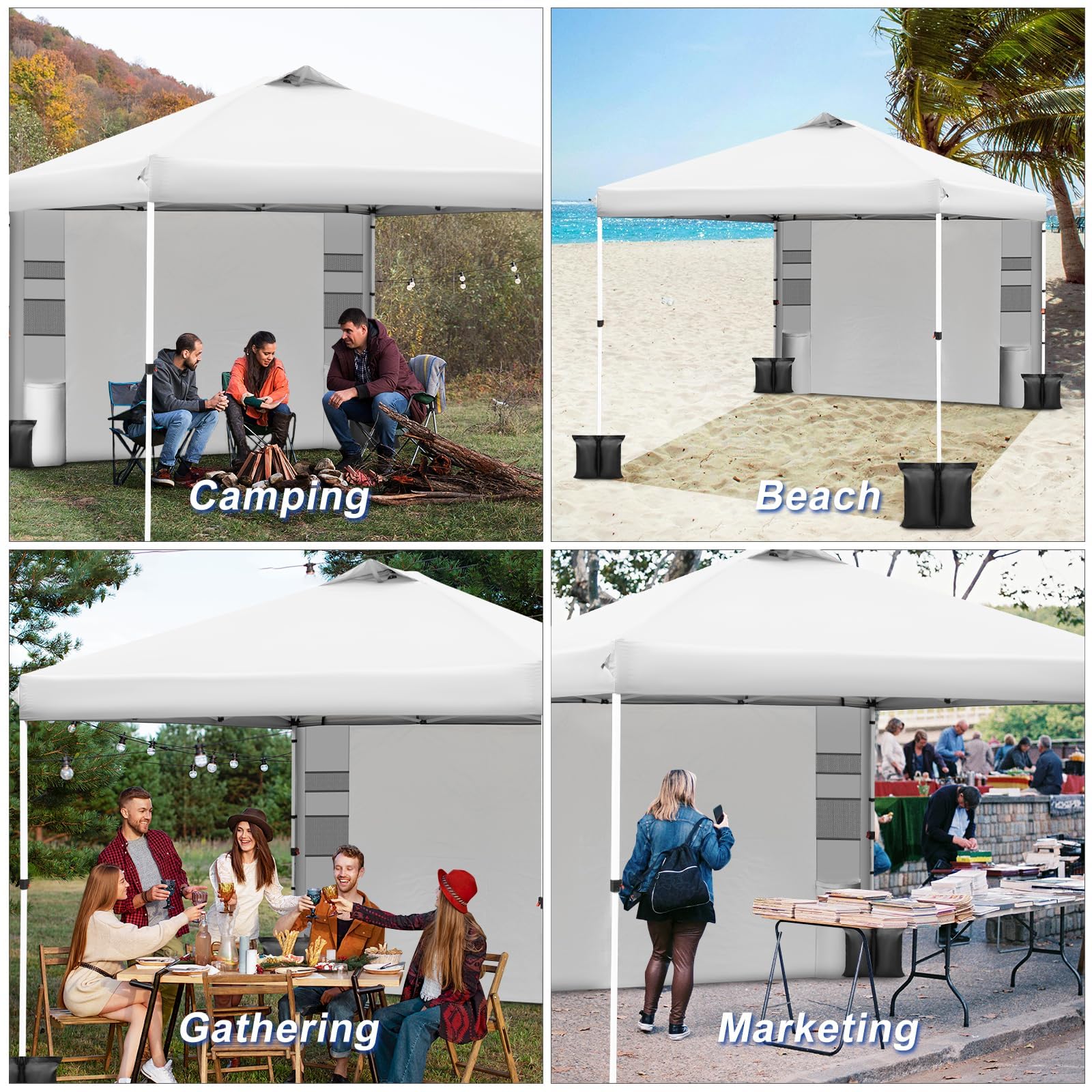 ๐ฃ๐ผ๐ฟ๐๐ฎ๐ฏ๐ถ๐น๐ถ๐๐ ๐ฎ๐ป๐ฑ ๐ฃ๐ฟ๐ฎ๐ฐ๐๐ถ๐ฐ๐ฎ๐น ๐๐ฐ๐ฐ๐ฒ๐๐๐ผ๐ฟ๐ถ๐ฒ๐: The pop-up instant canopy is equipped with a compact wheeled tote bag that is lightweight and durable, optimized in size for easy carrying and storage. Includes detachable side walls, 6 built-in pockets, and low profile accessories (comes with 4 weight bags, 4 guy ropes, and 8 stakes to enhance stability). Whether on the beach, camping or market, the portable design allows for flexible usage scenarios