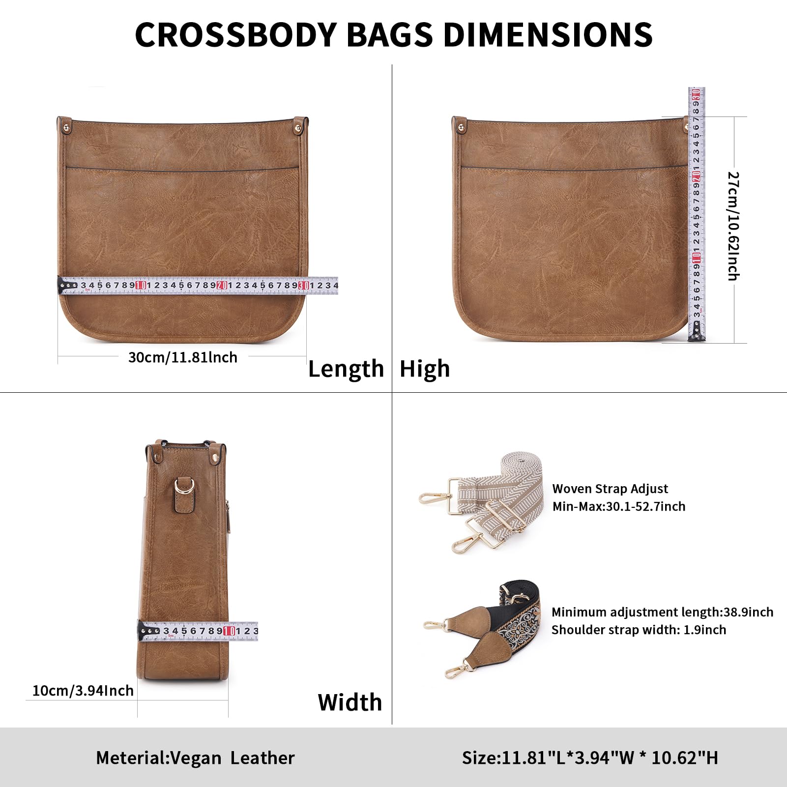 Crossbody Bag Dimension:This crossbody handbag dimension:(L) 12 x (W) 3.5x(H)10inch,weight about 0.61kg / 1.34pounds,and our leather crossbody bags for women is capable for storing many small daily necessities,such as wallet, phones,ipad,keys,cash,coins,sunglasses and makeup accessories,meet your large capacity needs