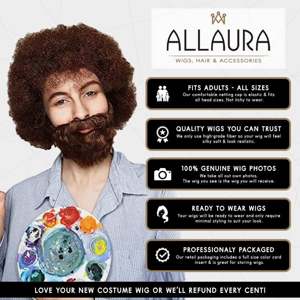 ✔ ALLAURA WIGS ARE PERFECT FOR ALL OCCASIONS (WITH RETURN INFO): Ideal for Halloween, fancy dress, cosplay events, office parties, or just painting happy little trees. Also great for disco nights, retro parties, or TV-themed costumes. Note: Wigs must be unused and in original condition for returns due to hygiene reasons. Please inspect before wearing. With ALLAURA, your wig game is strong, your costume is complete, and your party is unforgettable.