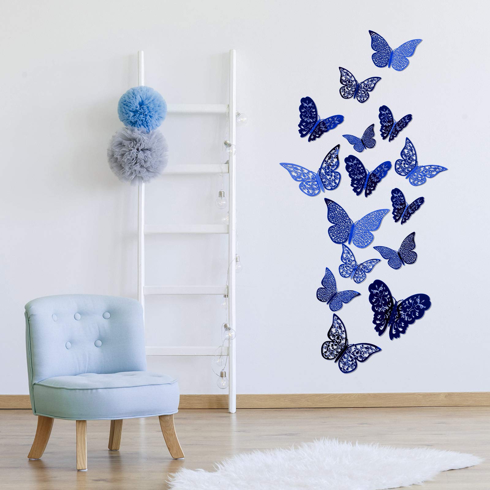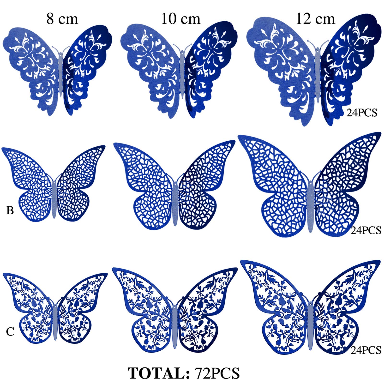3D hollow-out butterfly wall decals: the package contains 3 sizes of 3D butterfly wall stickers in 3 different styles, totally 72 pieces stickers; These stickers are suitable for serving as wall decoration or DIY home decor