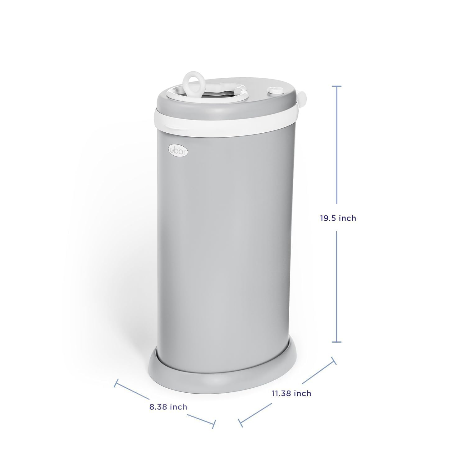 The award-winning Ubbi Diaper Pail has earned worldwide recognition for its superior odor control and convenience, representing a breakthrough in the diaper disposal market. The Ubbi Steel Diaper Pail is crafted from powder-coated steel and provides maximum odor control. It’s rubber seals are strategically placed to lock in odors, and the innovative sliding lid minimizes air disruption, ensuring that unpleasant smells remain contained within the pail. The optional childproof lock keeps little hands out. Catering to the needs of modern parents, our baby diaper pail is compatible with any standard trash bags saving parents money and time. Strategically designed to be the easiest disposal system to load, use, empty, and clean. Enter the world of Ubbi where innovative products are designed and created with parents and children in mind. A wide range of Ubbi branded products is now available for today’s modern parents that are looking for stylish and functional baby essentials. Do not clean with any harsh abrasives or liquids - even water! Wipe clean with a dry cloth to prevent rust. No special bags needed. Dimensions: 19.5” H x 8.4” W x 11.4” D. Opening Size: 5 inches diameter. Holds up to 55 newborn sized diapers.