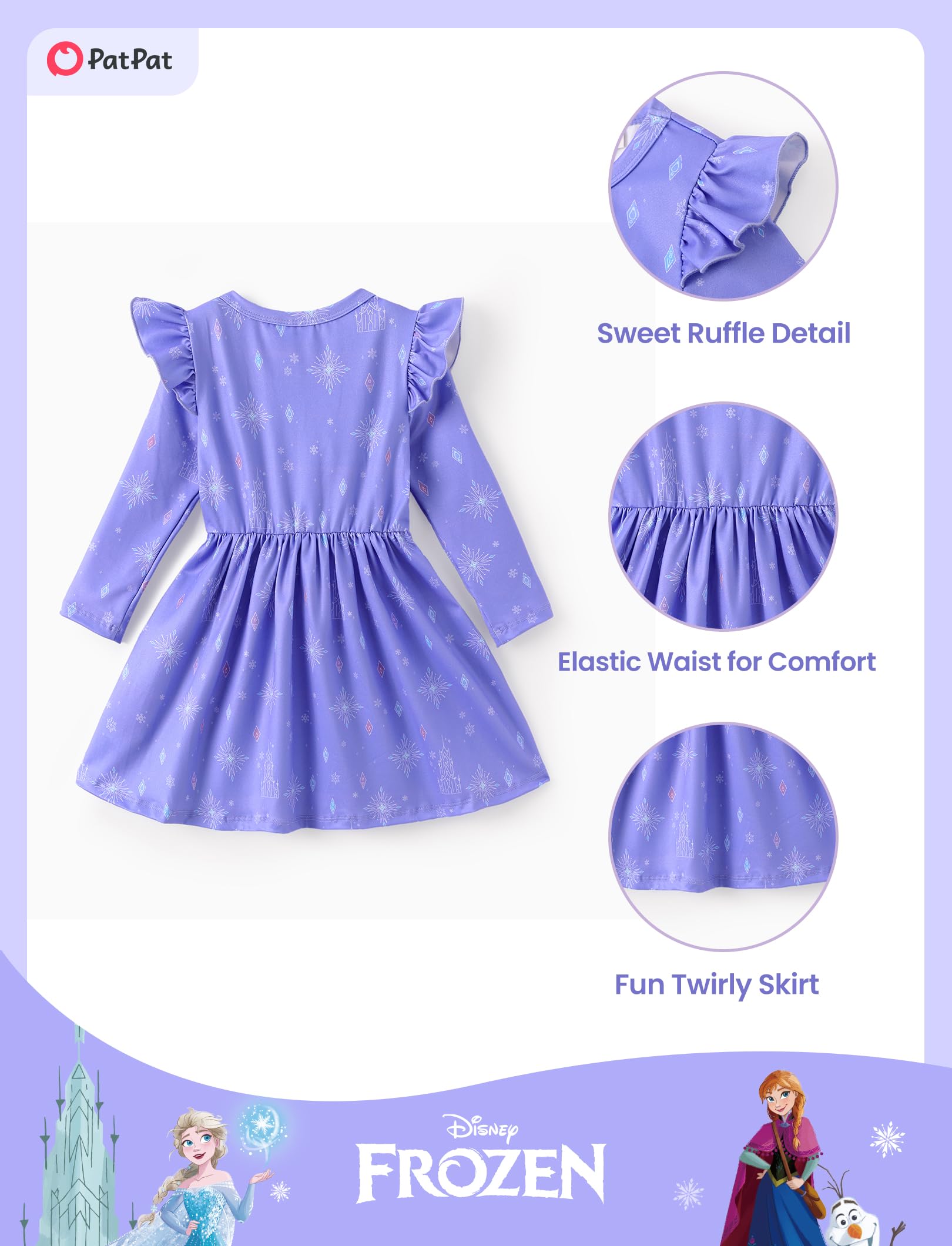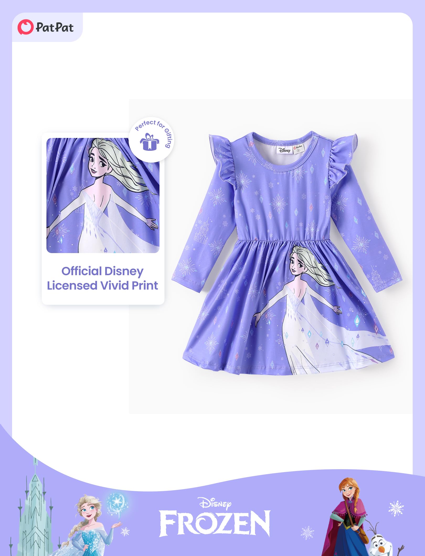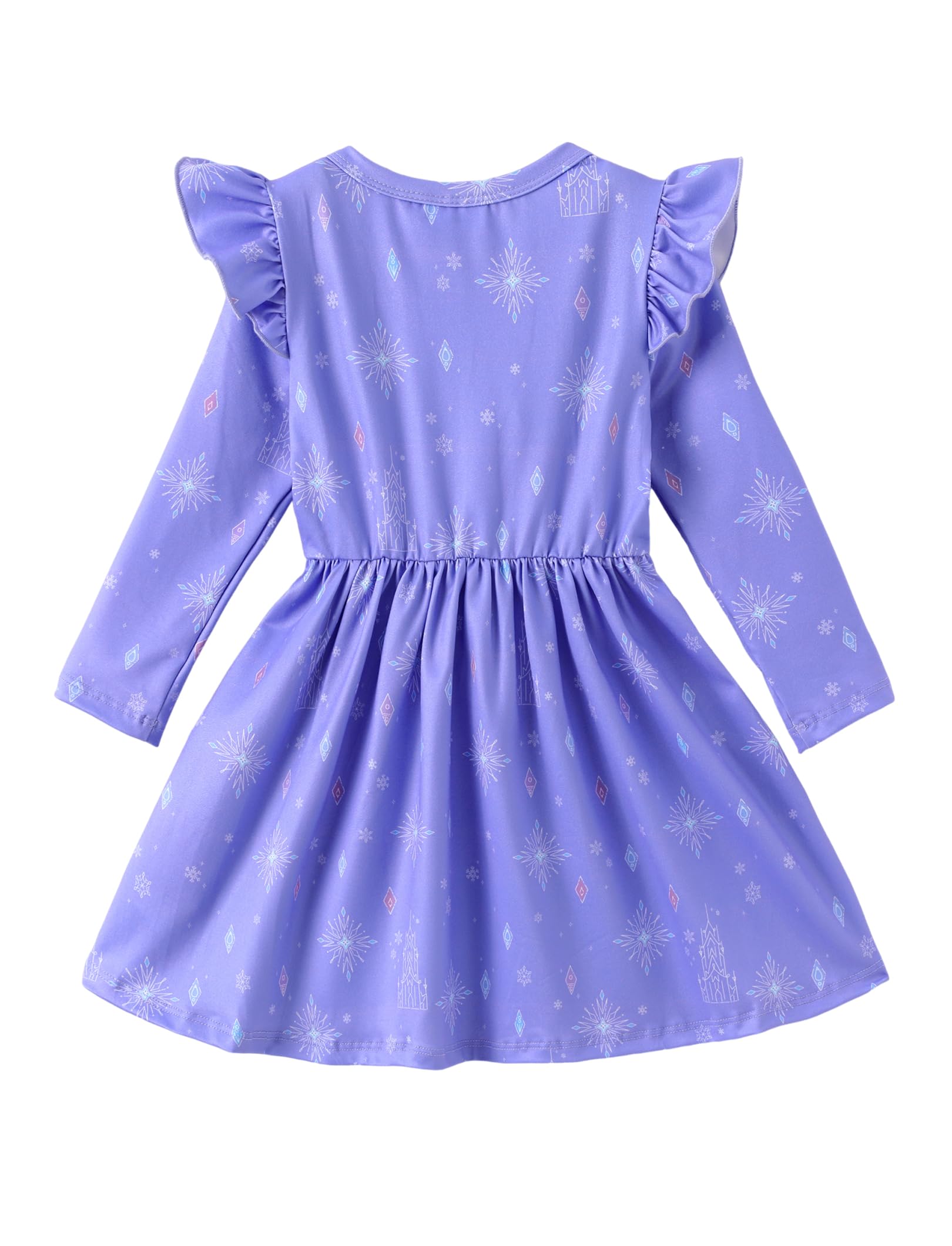 Whimsical Frozen Elsa Dress: This charming purple dress features flutter sleeves, a classic crew neckline, and a stunning print of Elsa from Frozen 2, surrounded by snowflakes and sparkling details. With its stretchy waist and flowy skirt, itβs perfect for twirling, playing, and everyday fun. Ideal for birthdays, dress-up days, or adding a touch of Disney charm to her wardrobe