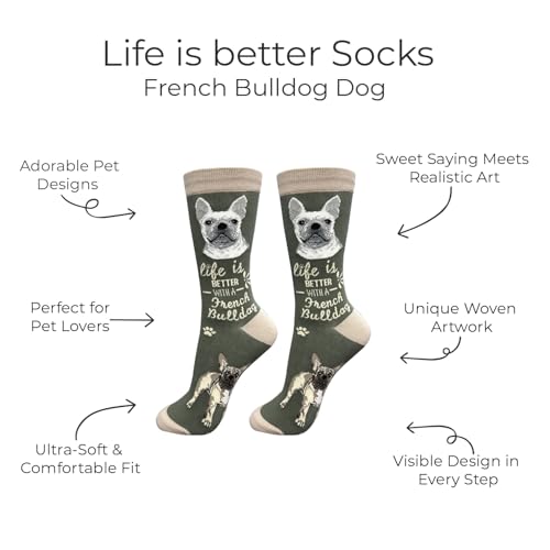 Description Introducing our collection of adorable and vibrant pet lover socks designed exclusively for pet lovers! These funny socks are the epitome of cuteness and novelty, guaranteed to bring a smile to your face. Big image of dog head woven on both sides on the socks and full body image woven on the bottom of the socks with a cute saying that says life is better with Dog. These socks are made in South Korea, These funny socks are made from 200 needle count machines which give life-like detail of your favorite pet. Step up your sock game with our adorable and hilarious Dog Socks, designed especially for pet lovers! These novelty socks are the perfect addition to your collection, featuring cute and silly designs that are bound to make you smile. Made with high-quality materials, these fun socks offer both comfort and style. They add a playful and fashionable touch to your everyday outfits, whether you're dressing up or keeping it casual. Whether you're a dog mom, a dog dad, or simply a dog lover, these socks are a must-have. With their delightful designs and comfortable fit, these socks are a fashionable treat for pet lovers and make great novelty gifts and dog mom gifts.