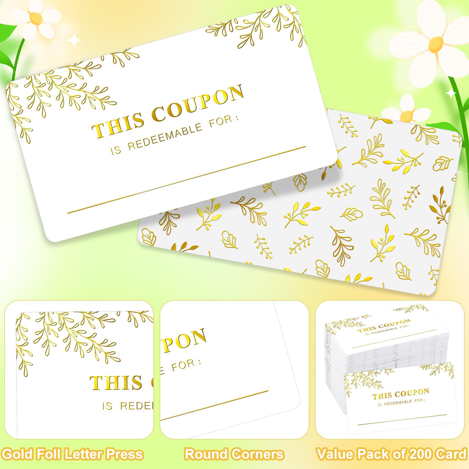 What Can You Get: you'll receive 200 smartly blank coupon cards, measuring approximately 3.5 x 2 inches/ 9 x 5 cm, the beautiful foil design and enough quantity can not only meet your own use need, but also can meet your sharing need