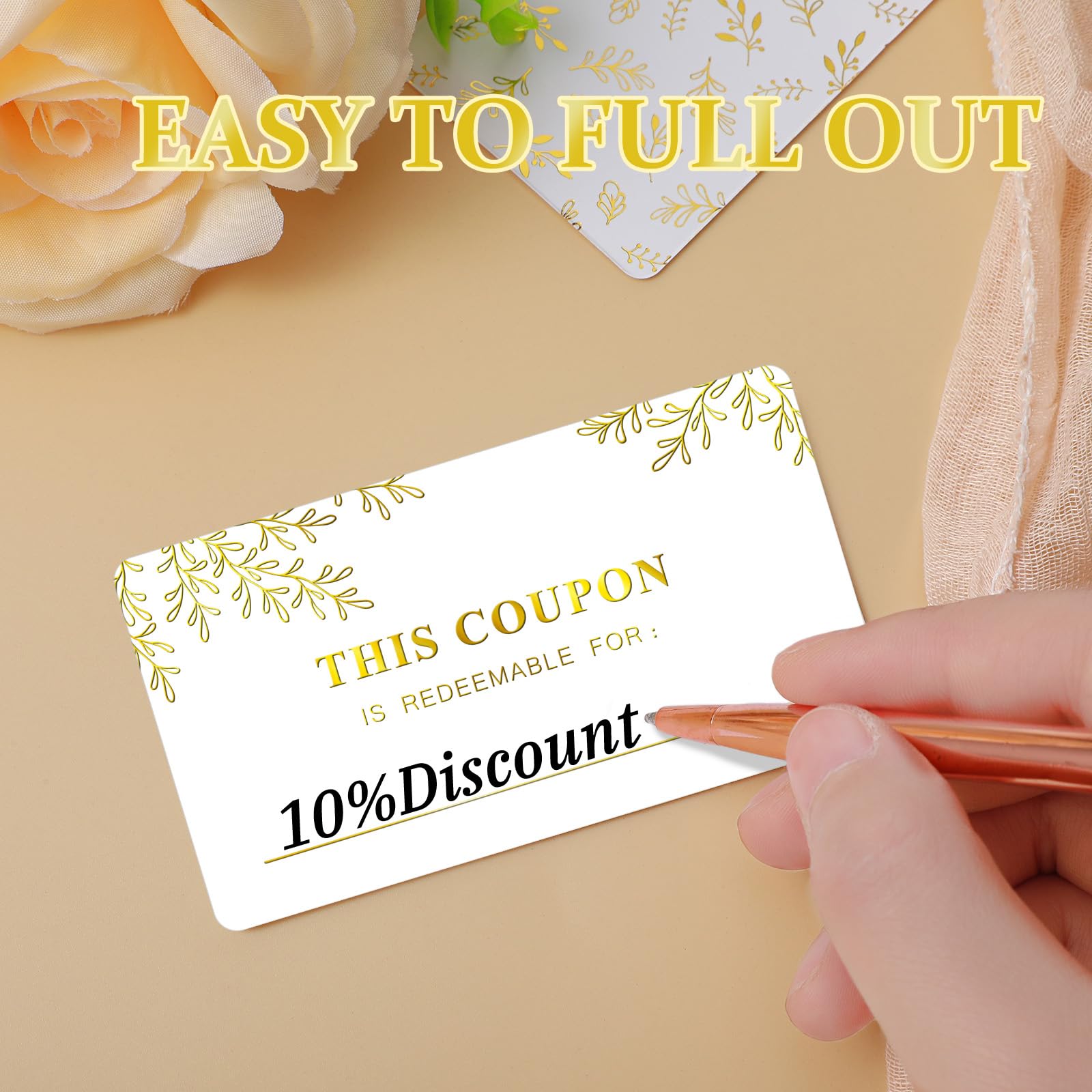 Elegant Gold Foil Design: our coupon cards are designed with a special idea; Each card is printed with a delicate gold foil pattern for an extra surprise, and the delicate leaf pattern gives the whole card a soulful and elegant look