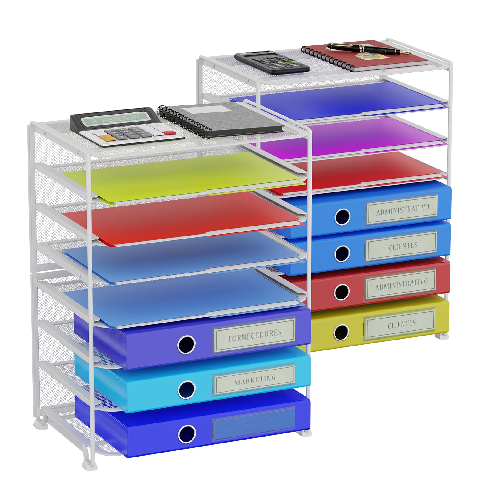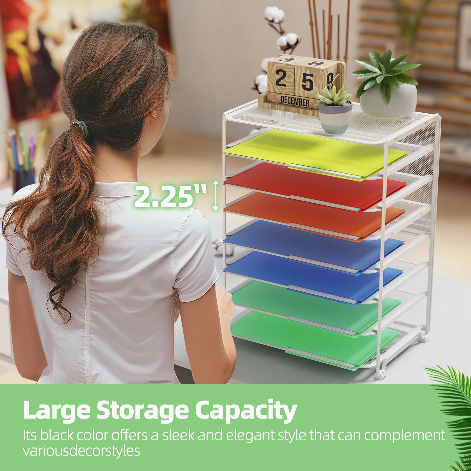 8 TIER EXTRA LARGE CAPACITY: Stackable and sliding file tray, desktop file tray storage is large enough to hold more files and categorize them in more detail, keeping your desk organized and fresh