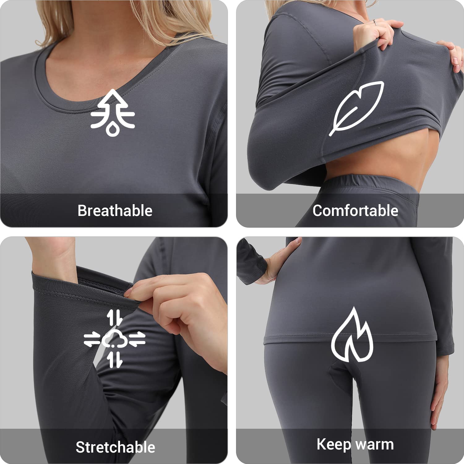 MATERIALl: Thermal underwear set is made of ultra-soft polyester that feels cozily soft, is completely non-irritating, and keeps you comfortably warm to beat the cold weather.