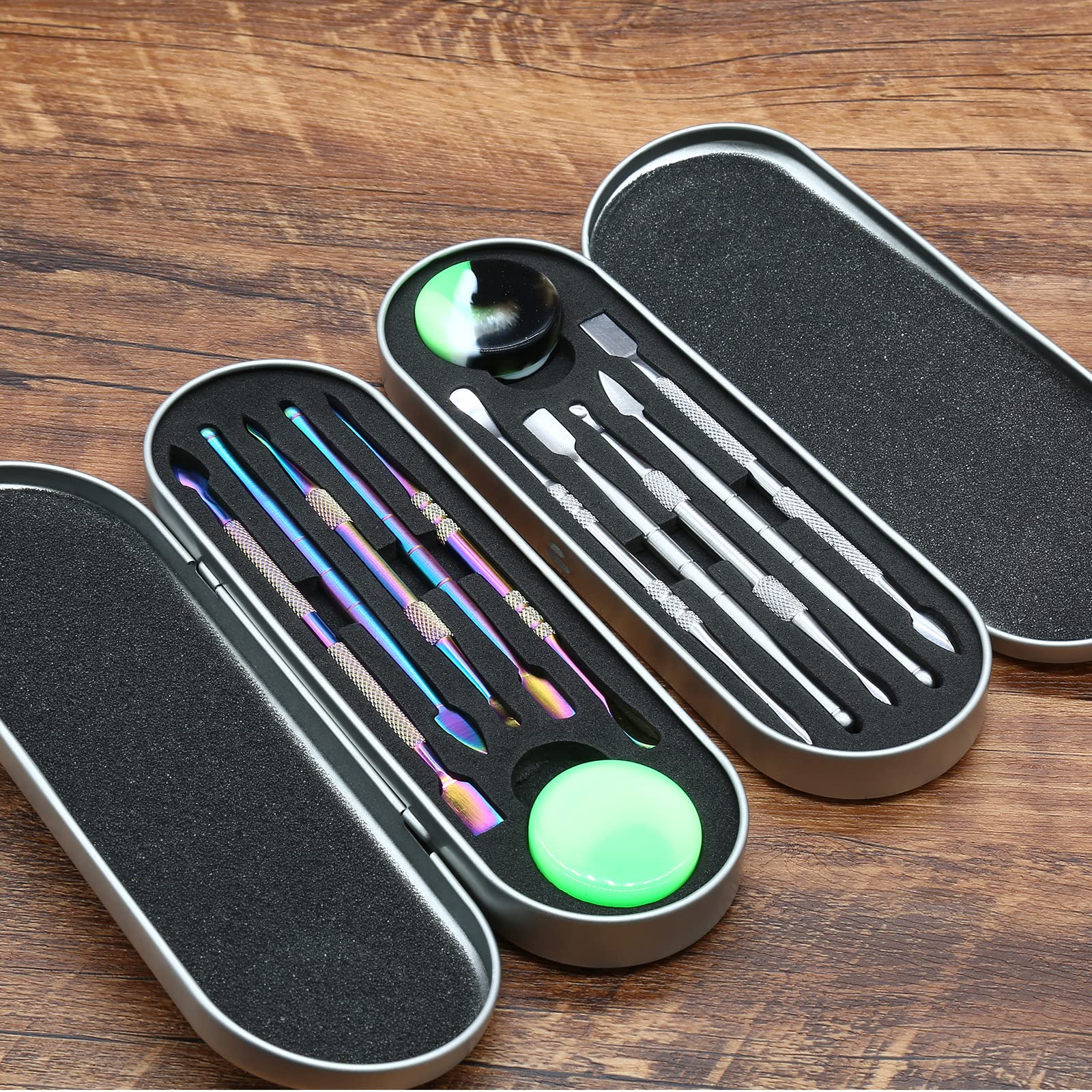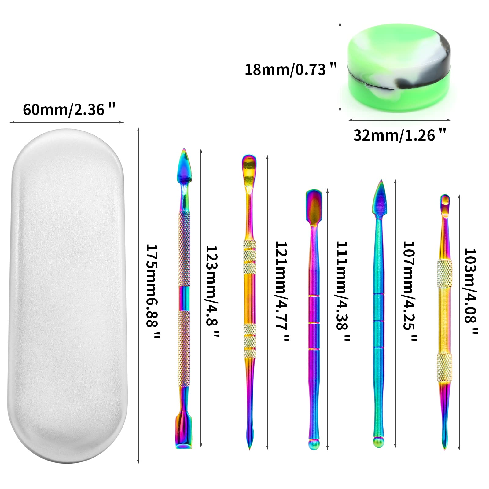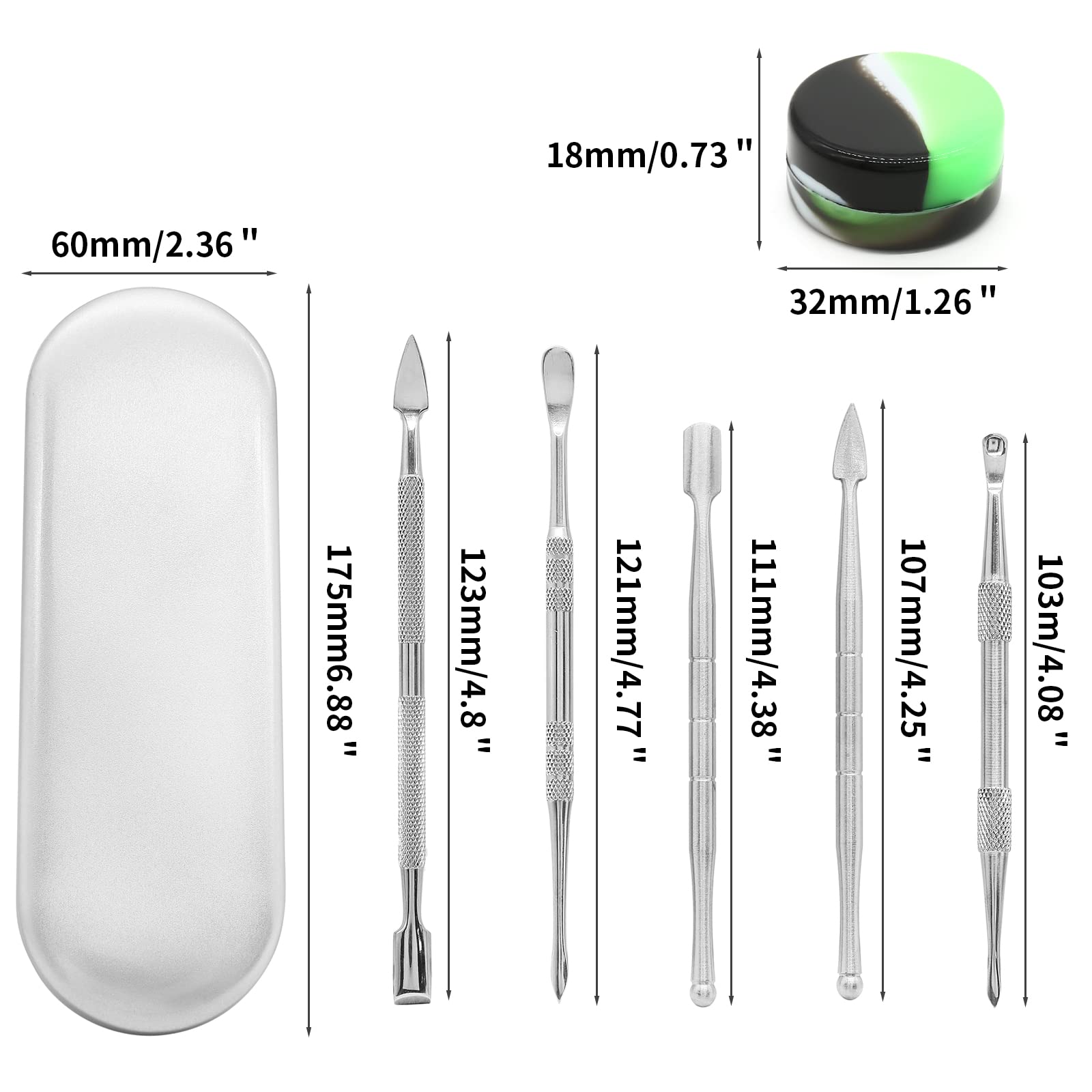 【Package Includes】 -- 5PCS x Rainbow + 5PCS Silver Double-headed Wax Carving Tools, 2PCS x Silica Gel Container, 2PCS Tin Cases. Total is 2 Sets, 12Pcs.