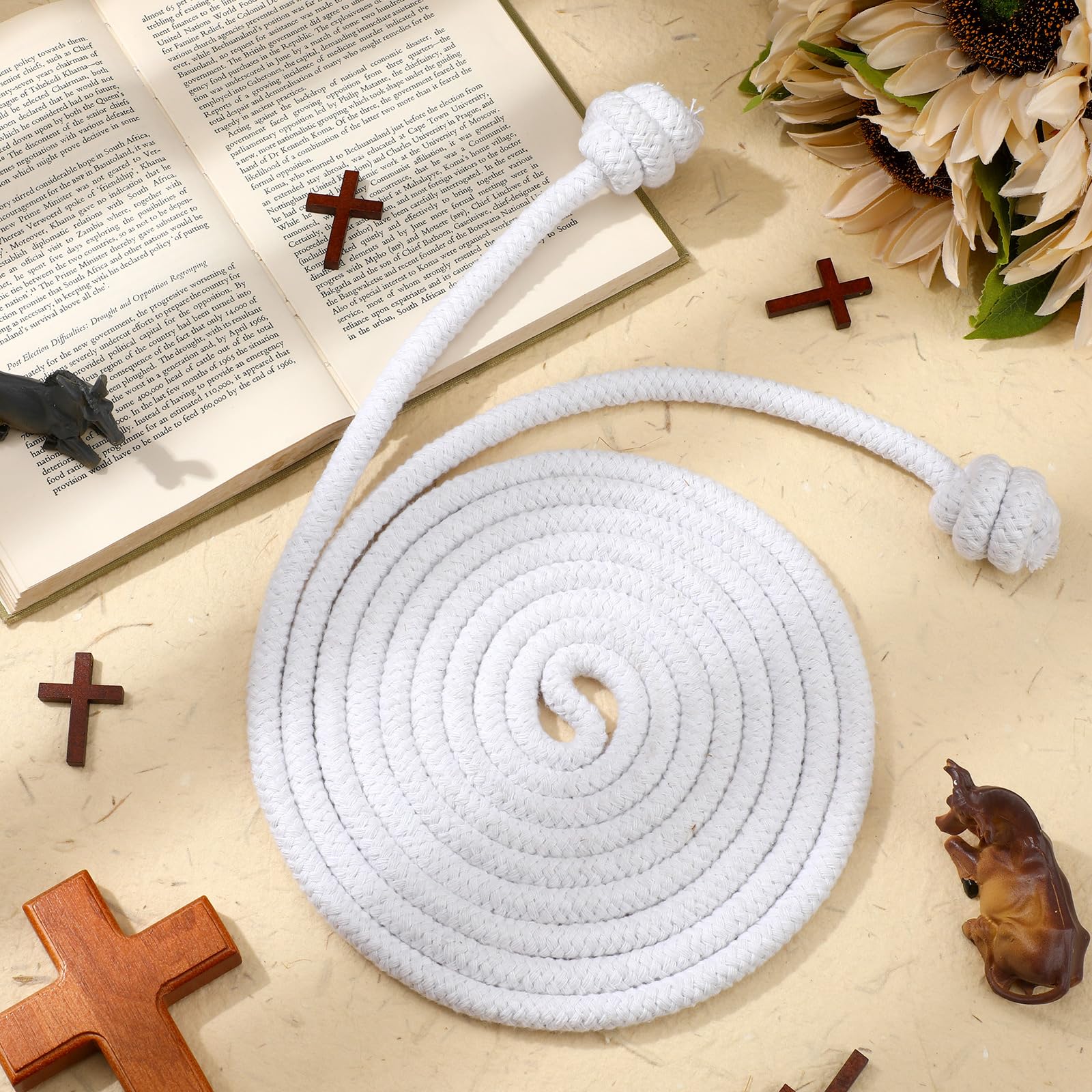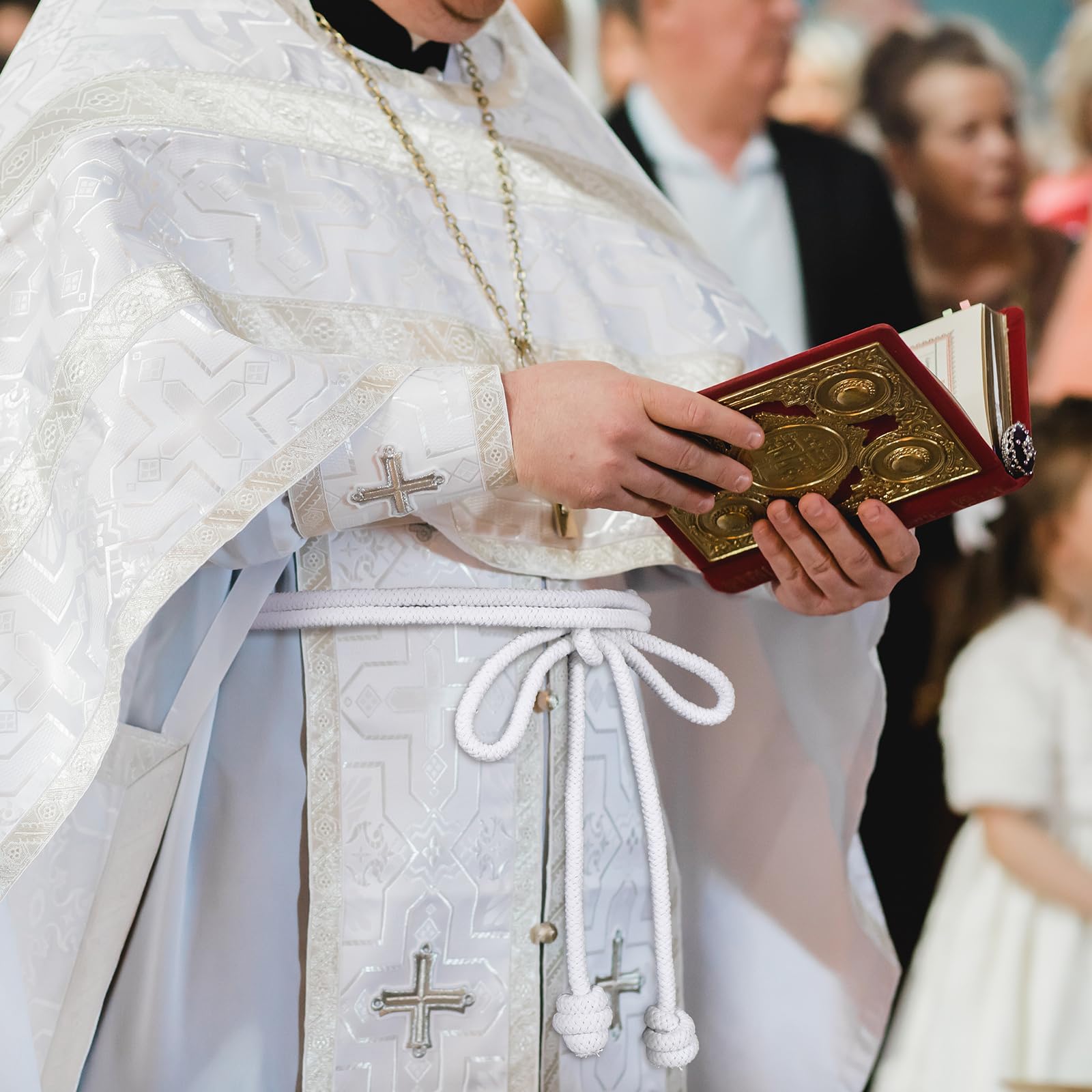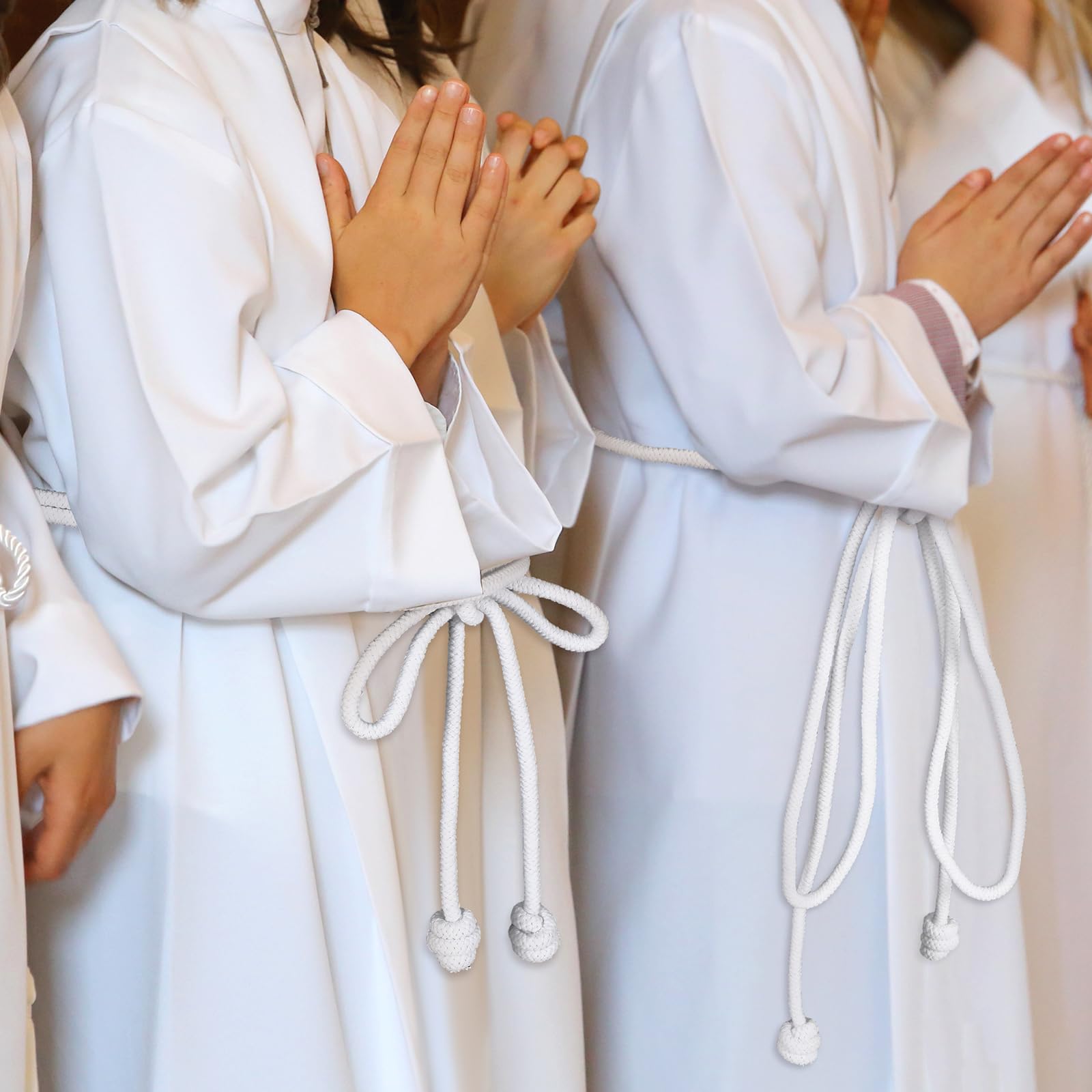 Size informations: The total length of the white clergy rope is about 153 inches, and the tassel design is about 5 inches long; The white clergy cincture rope is long enough to cooperate with clergy to complete related religious activities and rituals