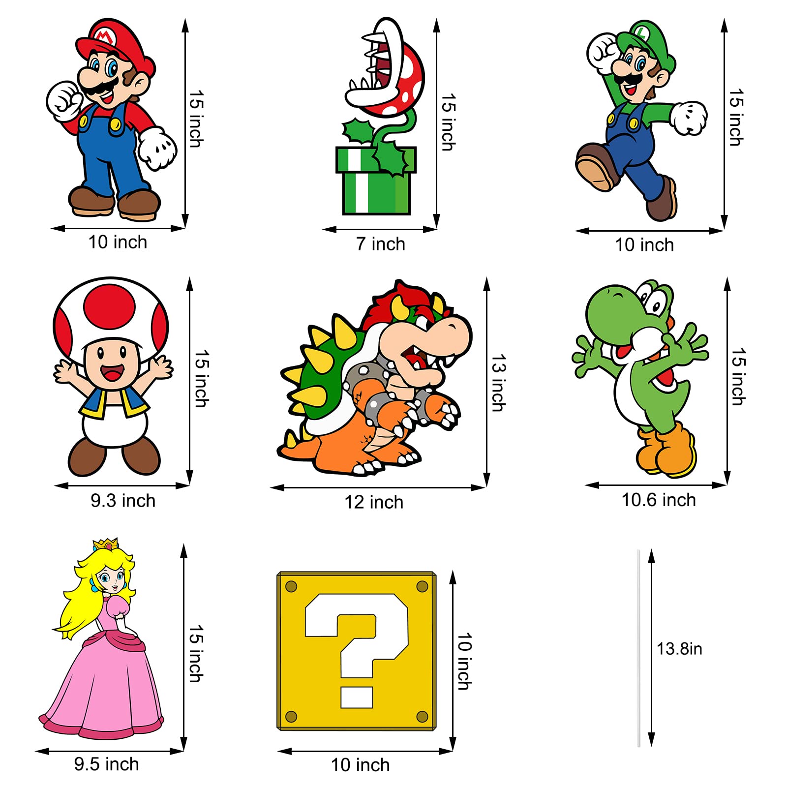 【Mario Birthday Party Decorations】 These outdoor decorations have 8 different designs, the bright color yard signs set will create a big hit and great fun to your party.