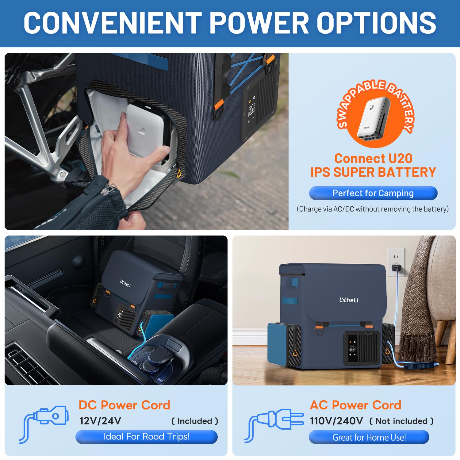 [What You’ll Get] Professional-grade electric cooler with lifetime technical support. Complete kit includes: 1 Litheli FrozenPack car refrigerator (20L capacity), 2 U20 IPS Super Battery (6hr runtime), 3-way backpack mounting system. *Tip: Our compressor-powered car fridge outperforms thermoelectric coolers in cooling speed and temperature range.