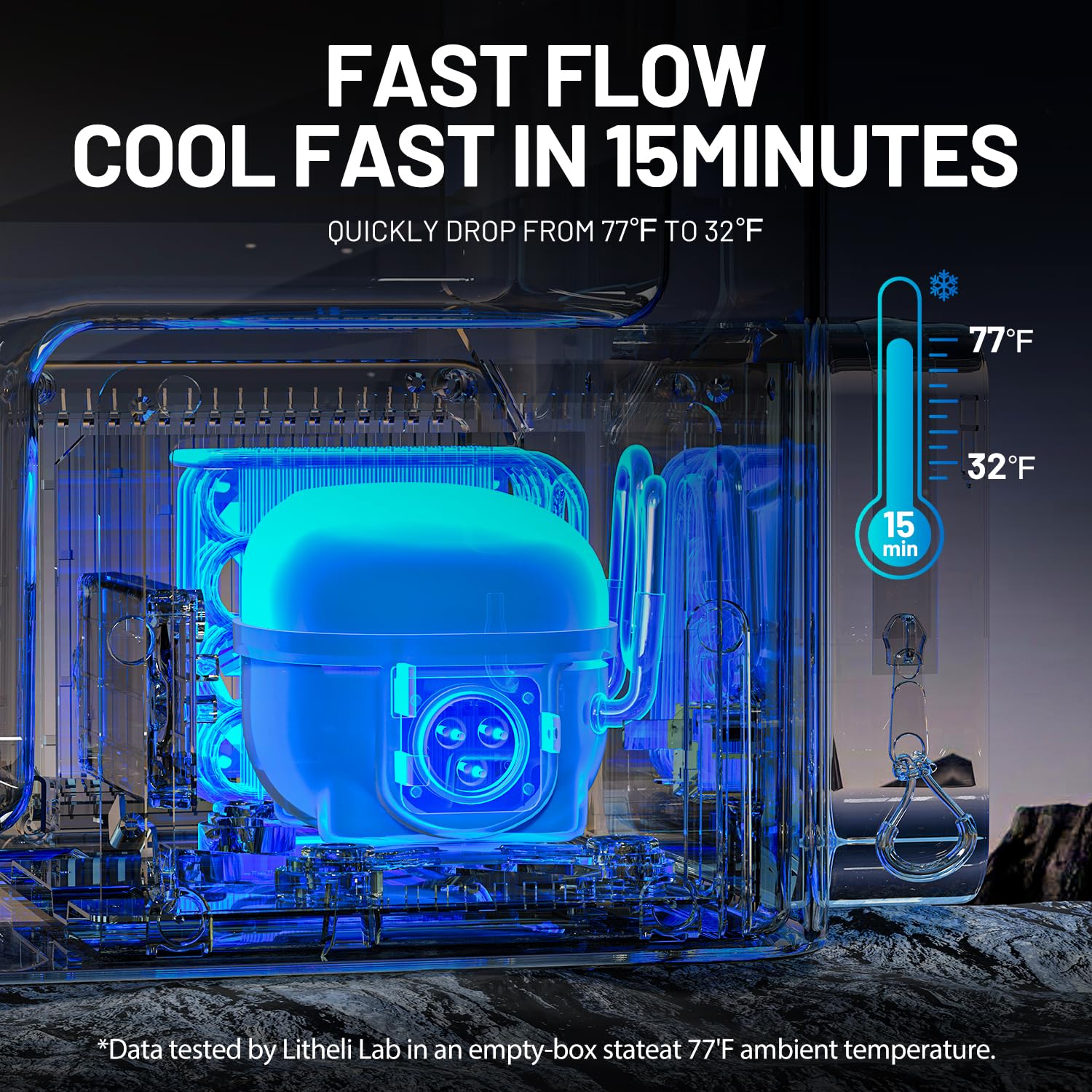 [Turbo Cooling & Extended Freshness] Experience 15-minute rapid cooling (77℉→32℉)- 3x faster than standard electric coolers. Maintain precise temps from -4℉(freezing) to 68℉(warming) using the digital control panel. The display shows the temperature in real time.Triple-layer insulation keeps contents chilled for 4hrs during power outages. *Pro Tip: Use as a car fridge for road trips or standalone freezer for beach camping.