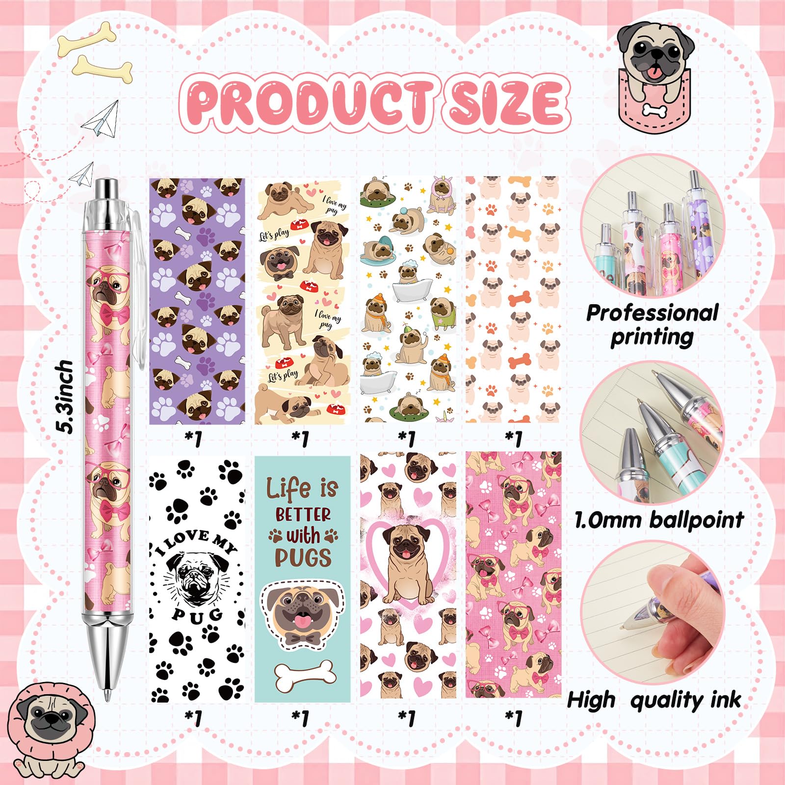 What You Will Receive: there are 8 pug ballpoint pens with different styles in the package, the sufficient quantity and variety of styles are enough to meet your various needs on different occasions; They can also be applied as party favors and holiday gifts for relatives and friends