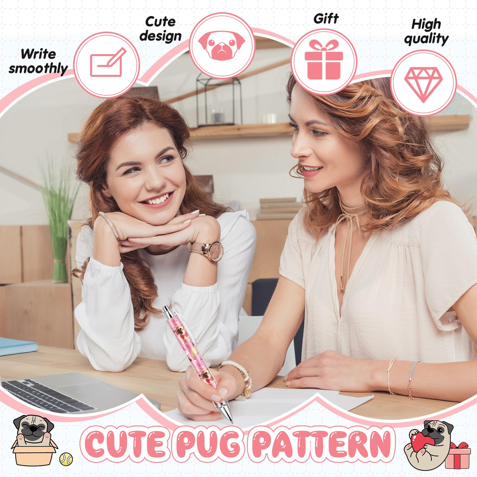 Beautiful Printing: these black ink pens are all in pug design, with exquisite details and bright colors, delicate and attractive, popular with most women; Each pug represents a different pug language, you can express your blessings to friends by choosing a suitable one as a gift