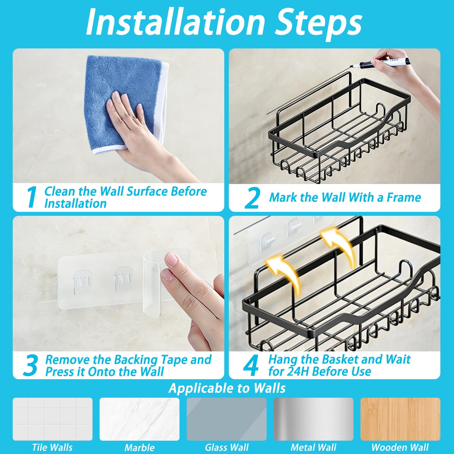 đ§ăEasy No-Drill InstallationăNo tools or drilling required! Simply clean the surface, apply the adhesive strips to smooth surfaces (tiles, marble, glass, metal), and hang the caddies. Ideal for renters or anyone looking to avoid wall damage.