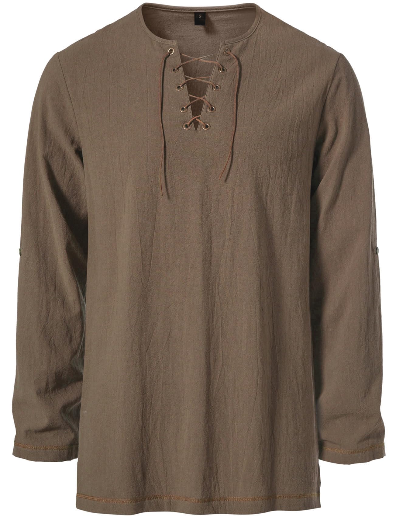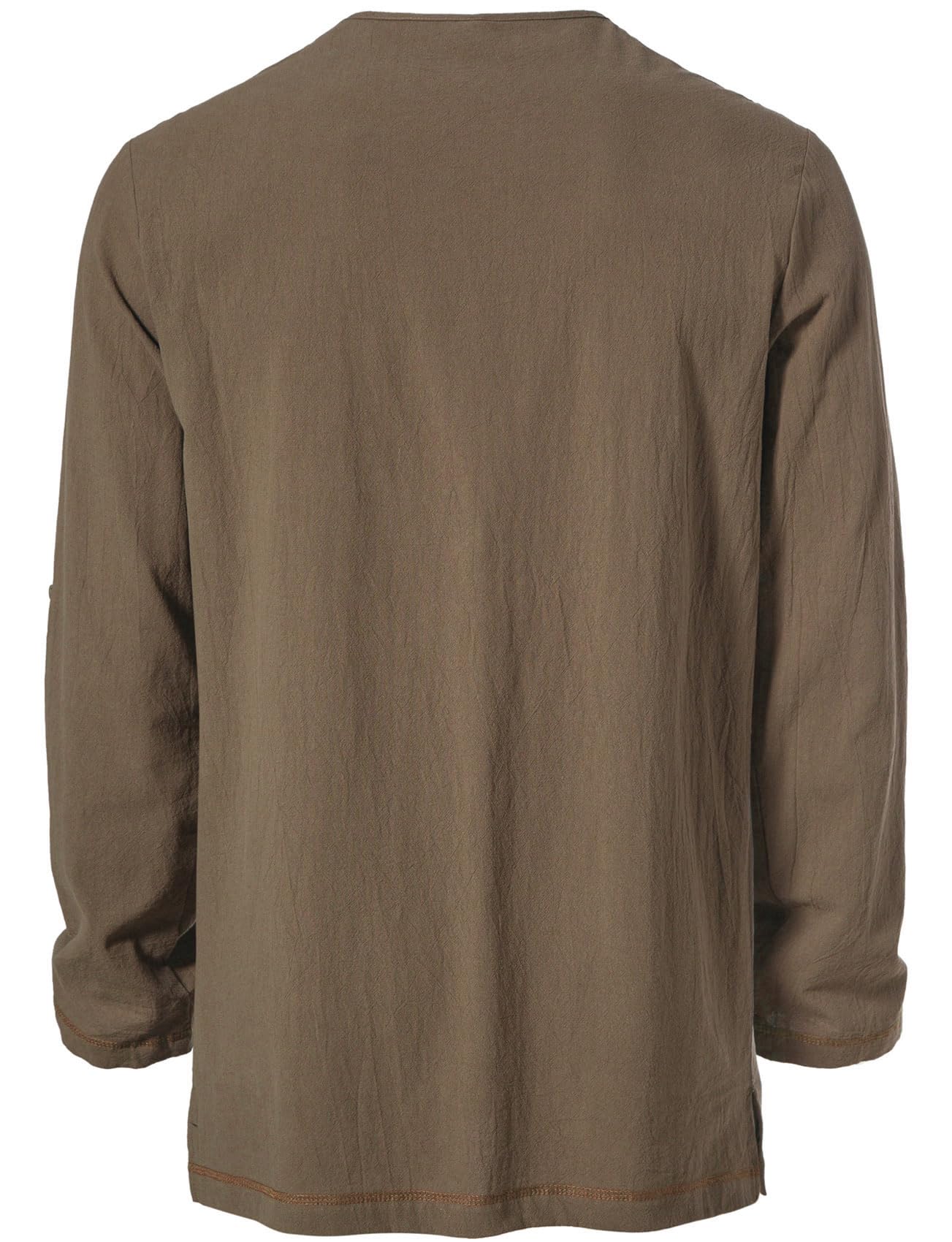 Design Concept: Mid-long tunic top / Contrast color drawstring design / Bronze buttonholes with retro buttons / Regular fit / V neck / Side slit / Long sleeve / Rolled sleeve