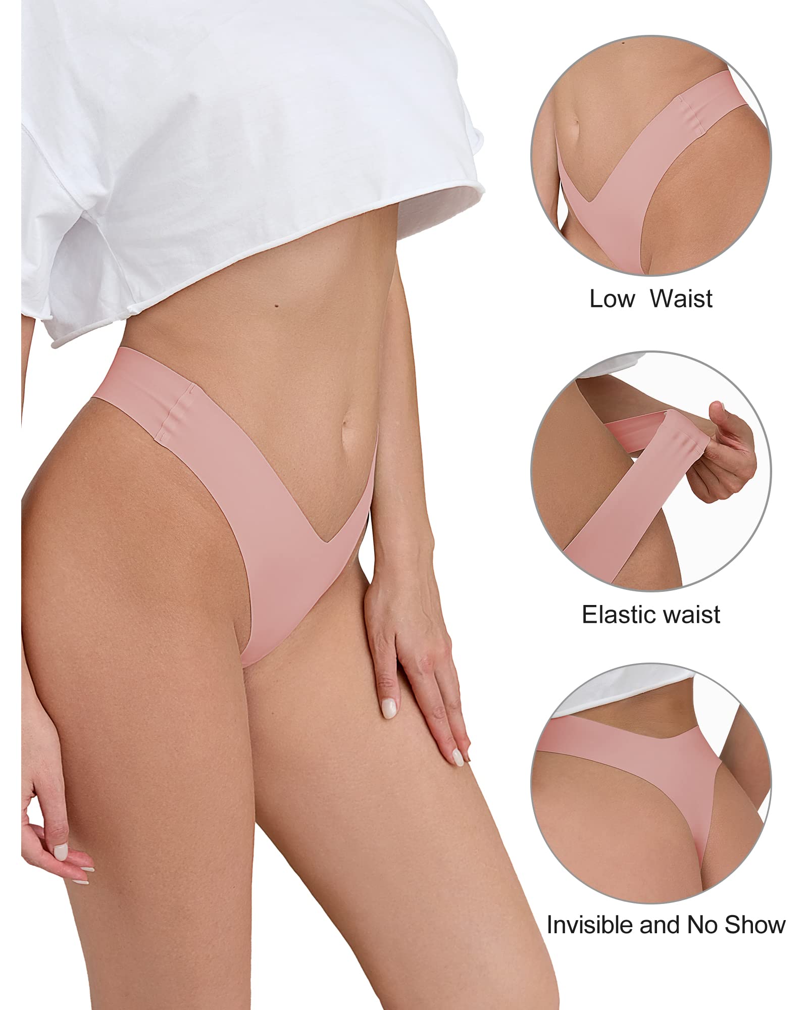 DESIGN:Low waist,ultra stretchy seamless panties thong with cotton liner.Tag-less design and seamless eliminates chafing or pinching while minimizing no show panties lines.