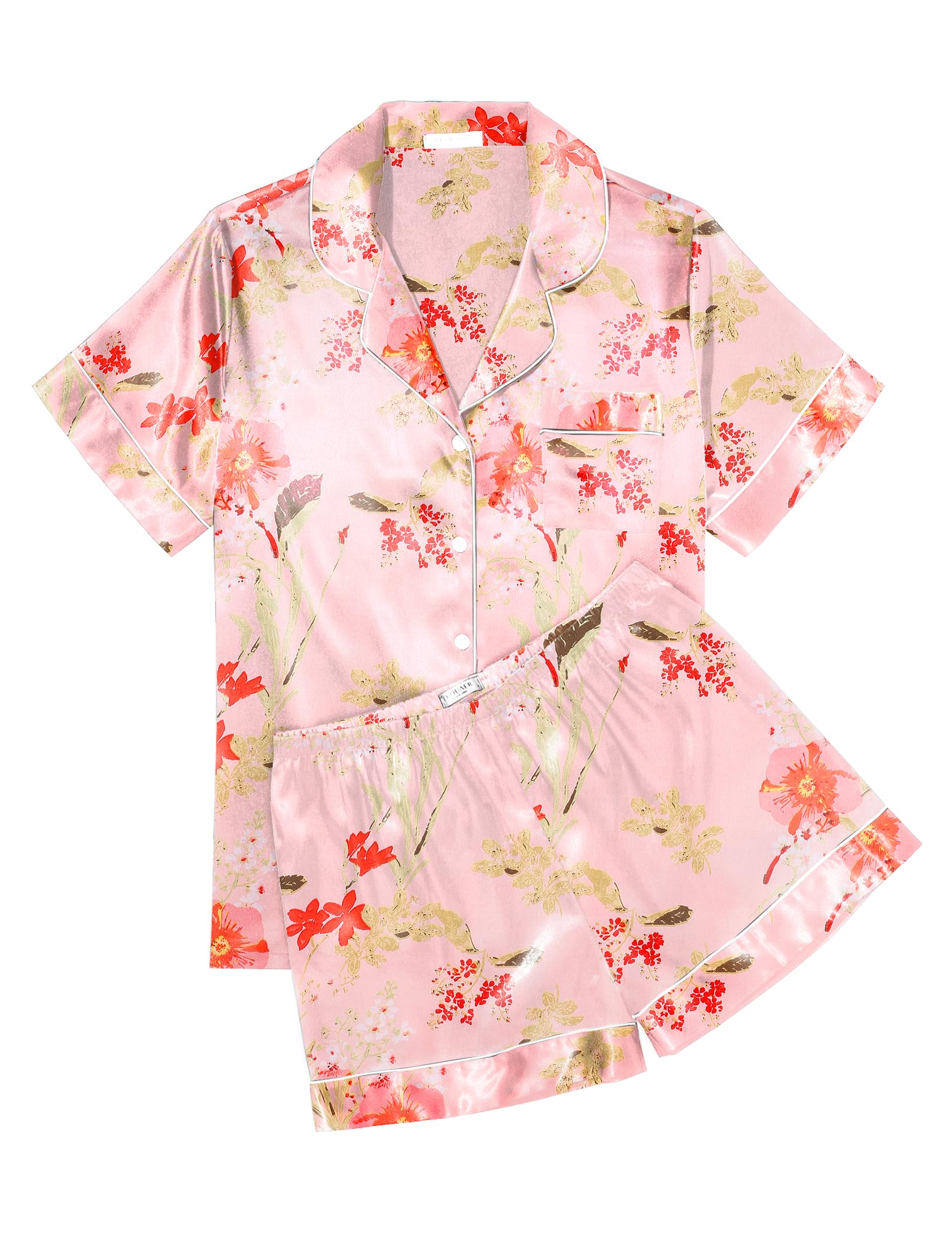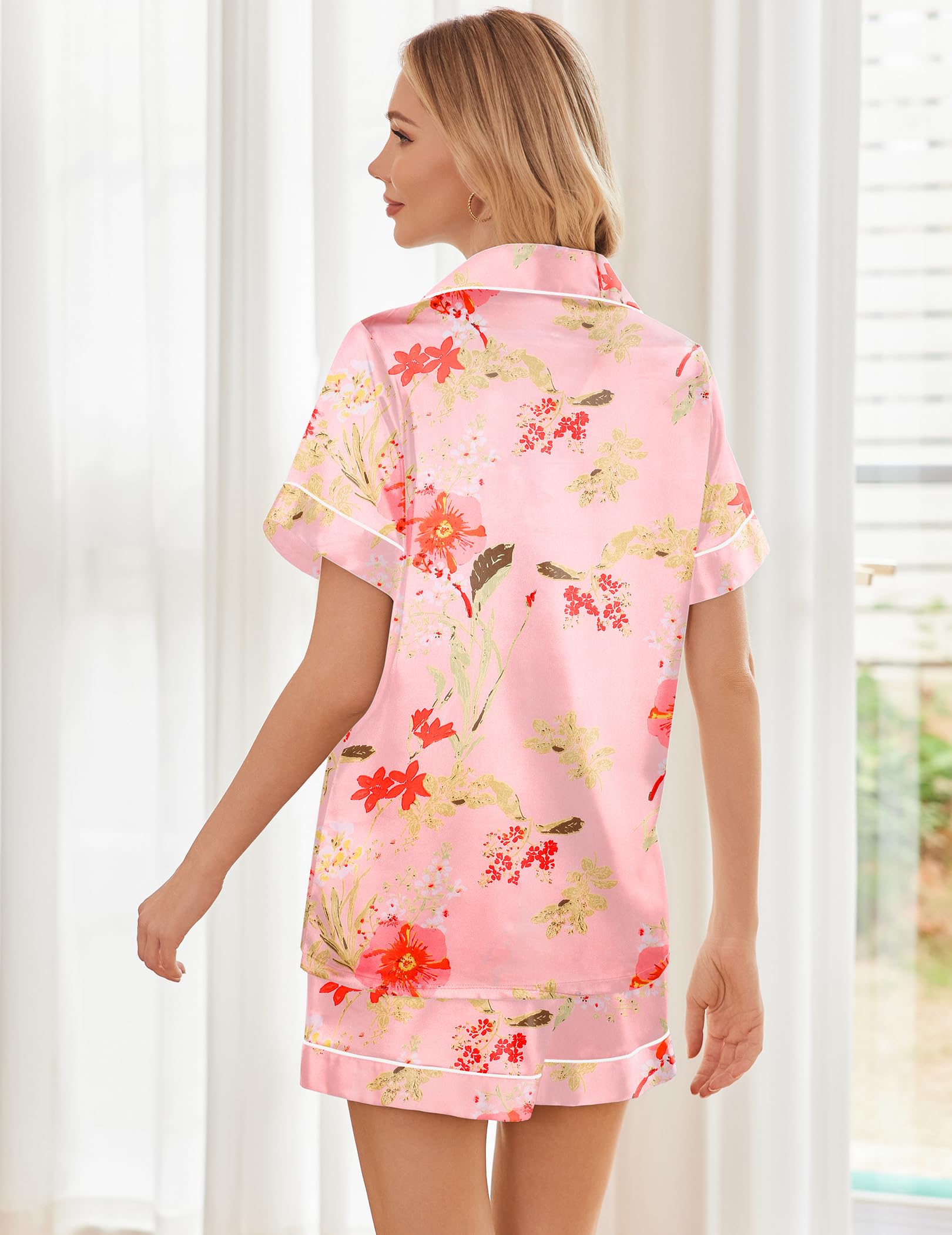 Pajama Top:Sleepwear for women with short sleeve,notch collar,button up pjs top and one chest pocket design.Skin-friendly satin pajamas for women which is great for sleeping,casual wear or lounging