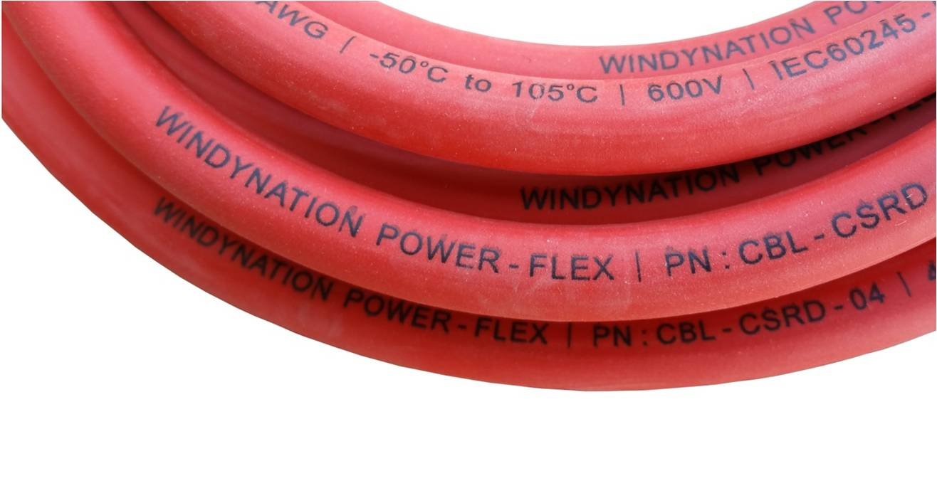 Inverter cables are WindyNation Power-Flex Battery Cable (pure copper) with SAE J1127 approval. Power-Flex cable is a pure copper conductor and very flexible.